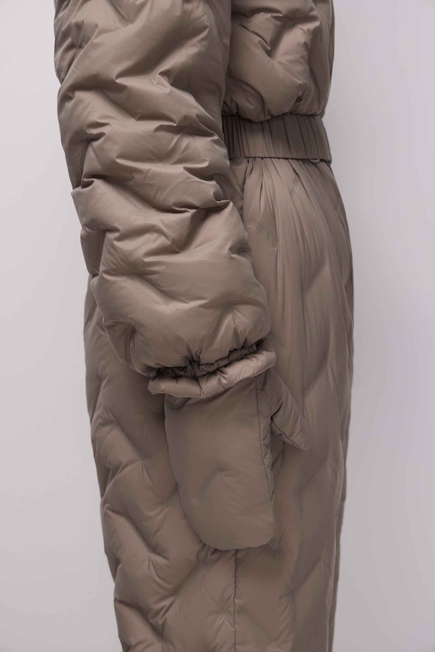 Варежки с наполнителем из пуха и пера из легкой нейлоновой ткани с водоотталкивающей пропиткой. По тыльной стороне выполнены с термо-стежкой по технологии heat seal. Нижняя часть продублирована синтепоном. Варежки регулируются шнуром-резинкой и фиксируются стопперами. Рекомендуется дополнить варежки пуховиком W4210024 и брюками W4170058.