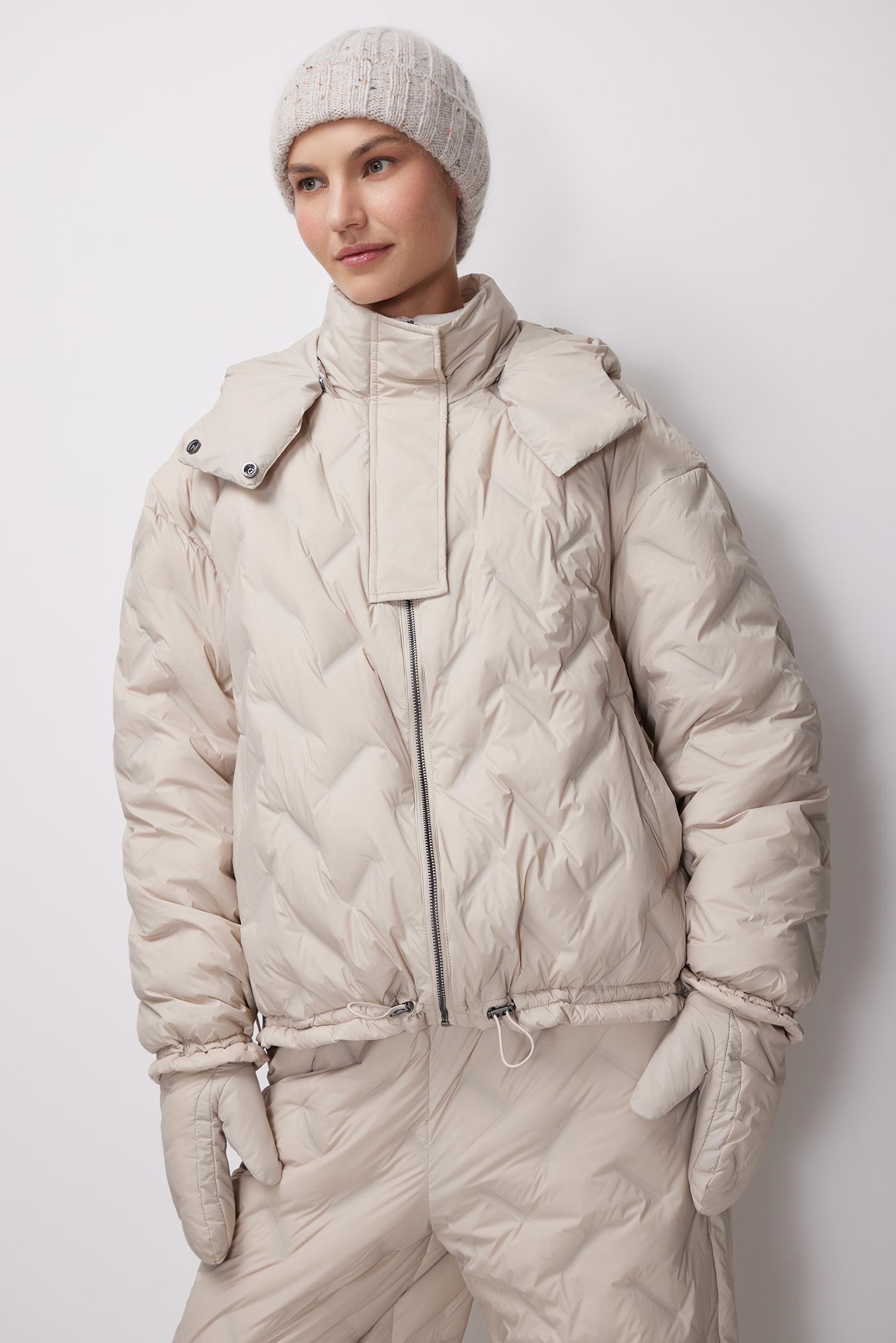 Варежки с наполнителем из пуха и пера из легкой нейлоновой ткани с водоотталкивающей пропиткой. По тыльной стороне выполнены с термо-стежкой по технологии heat seal. Нижняя часть продублирована синтепоном. Варежки регулируются шнуром-резинкой и фиксируются стопперами. Рекомендуется дополнить варежки пуховиком W4210024 и брюками W4170058.