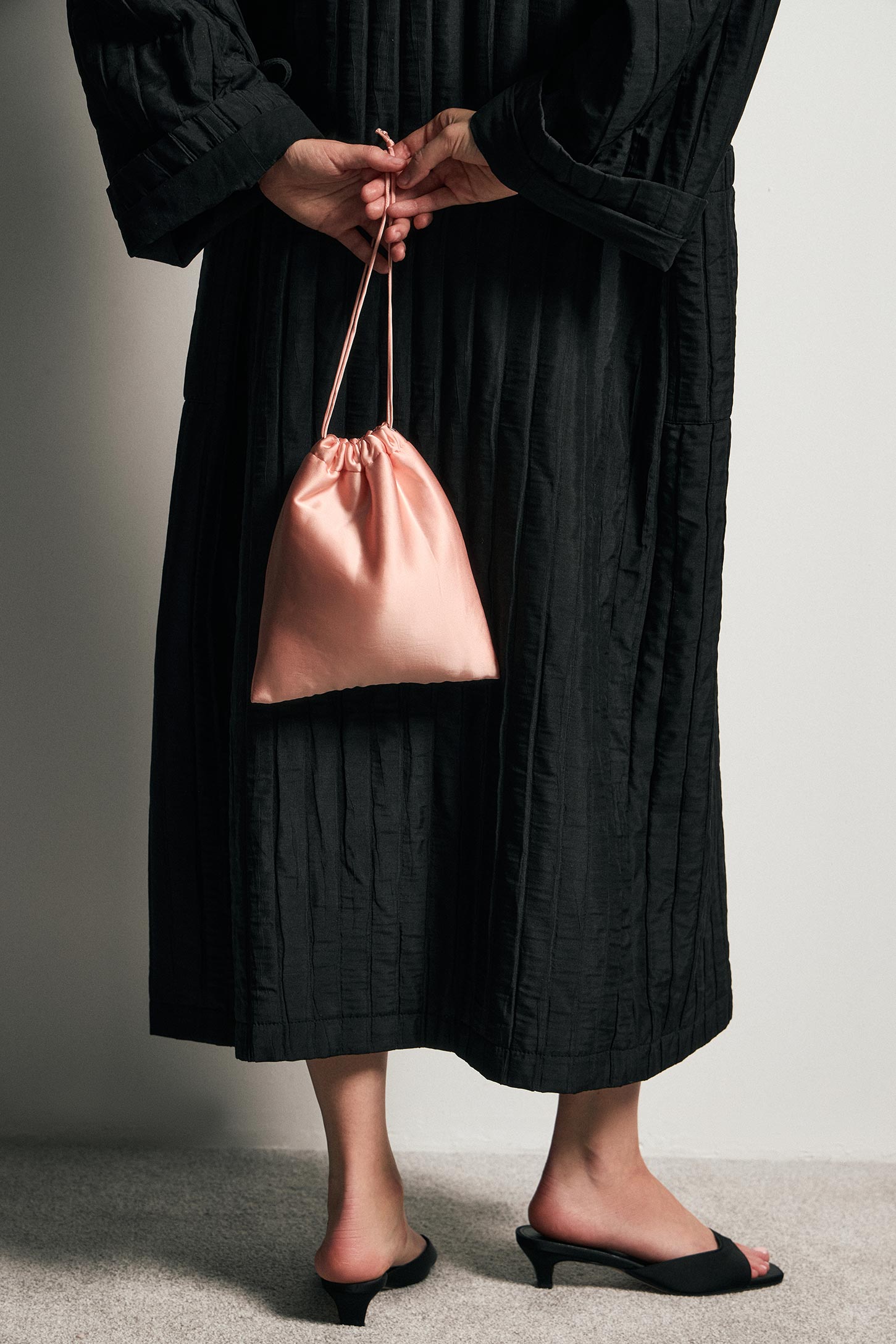 Мягкая декоративная сумка-мешочек из лёгкой сатиновой ткани с приятной на ощупь текстурой. Ручки-завязки позволяют удобно регулировать ширину сумки и изменять форму по желанию. Компактная и стильная, она станет элегантным акцентом в любом образе, сочетая практичность и изысканность.