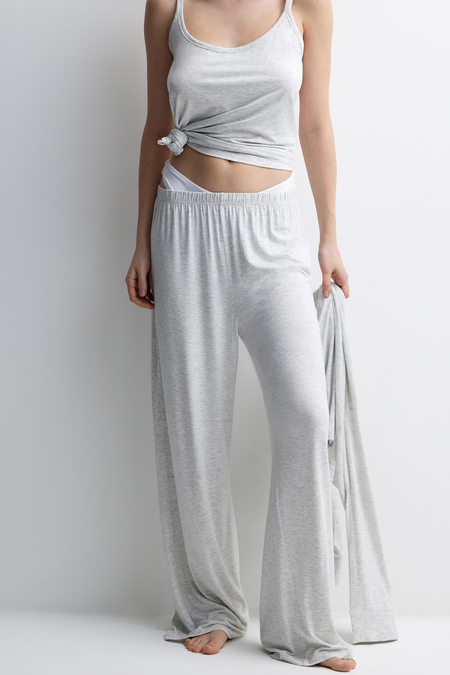 Брюки из мягкого трикотажного бамбукового полотна, которое отличается высокой воздухопроницаемостью, гипоаллергенностью и способностью отводить влагу, обеспечивая комфорт в течении дня. Эластичный пояс на резинке обеспечивает удобную посадку без давления. Прямой силуэт визуально вытягивает ноги и не сковывает движений. Посадка на талии обеспечивает комфорт и универсальность - изделие легко сочетать с различными элементами гардероба.