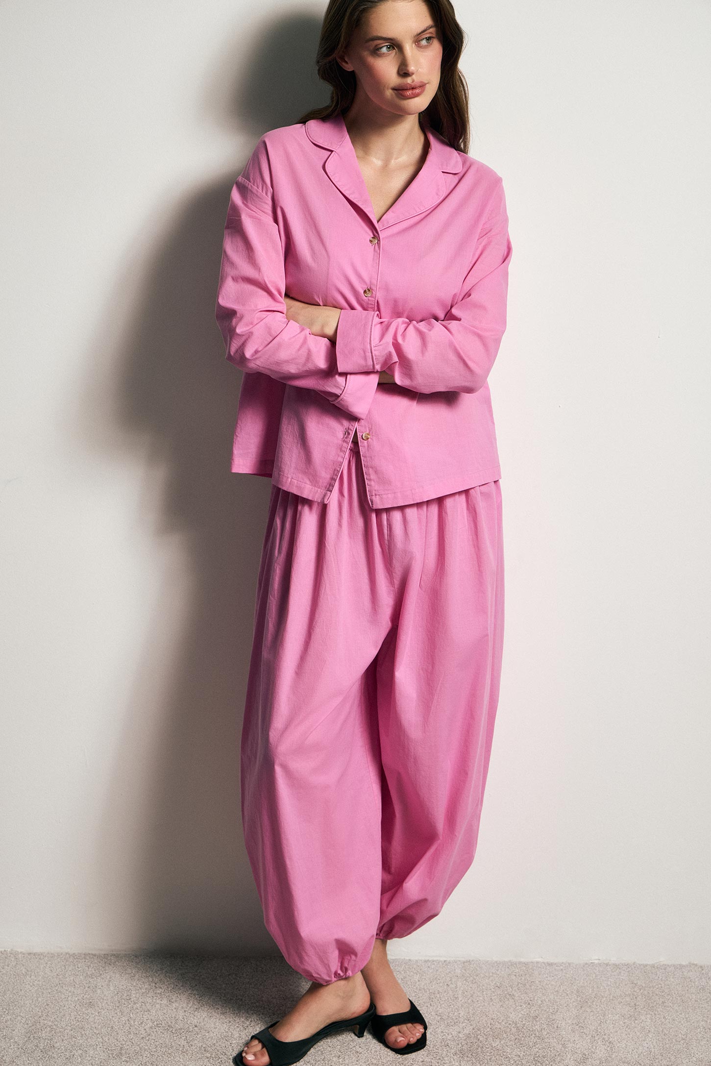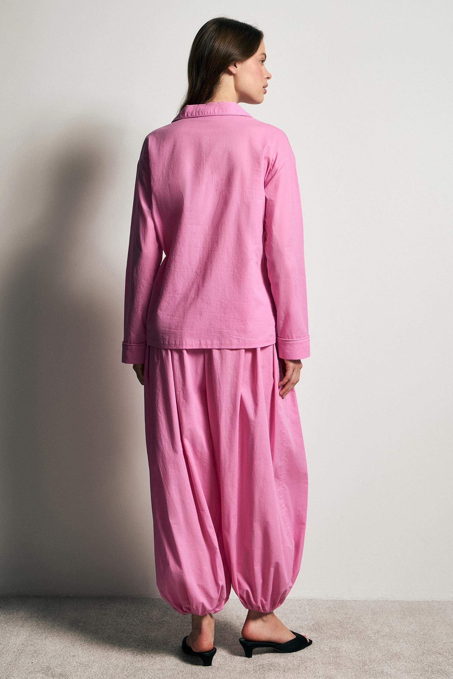 Широкие брюки-баллоны из мягкого хлопка-батиста. Эластичный пояс обеспечивает комфортную посадку, а резинка по низу фиксирует форму и подчёркивает объёмный силуэт. Лёгкая ткань делает модель функциональной и удобной в движении.