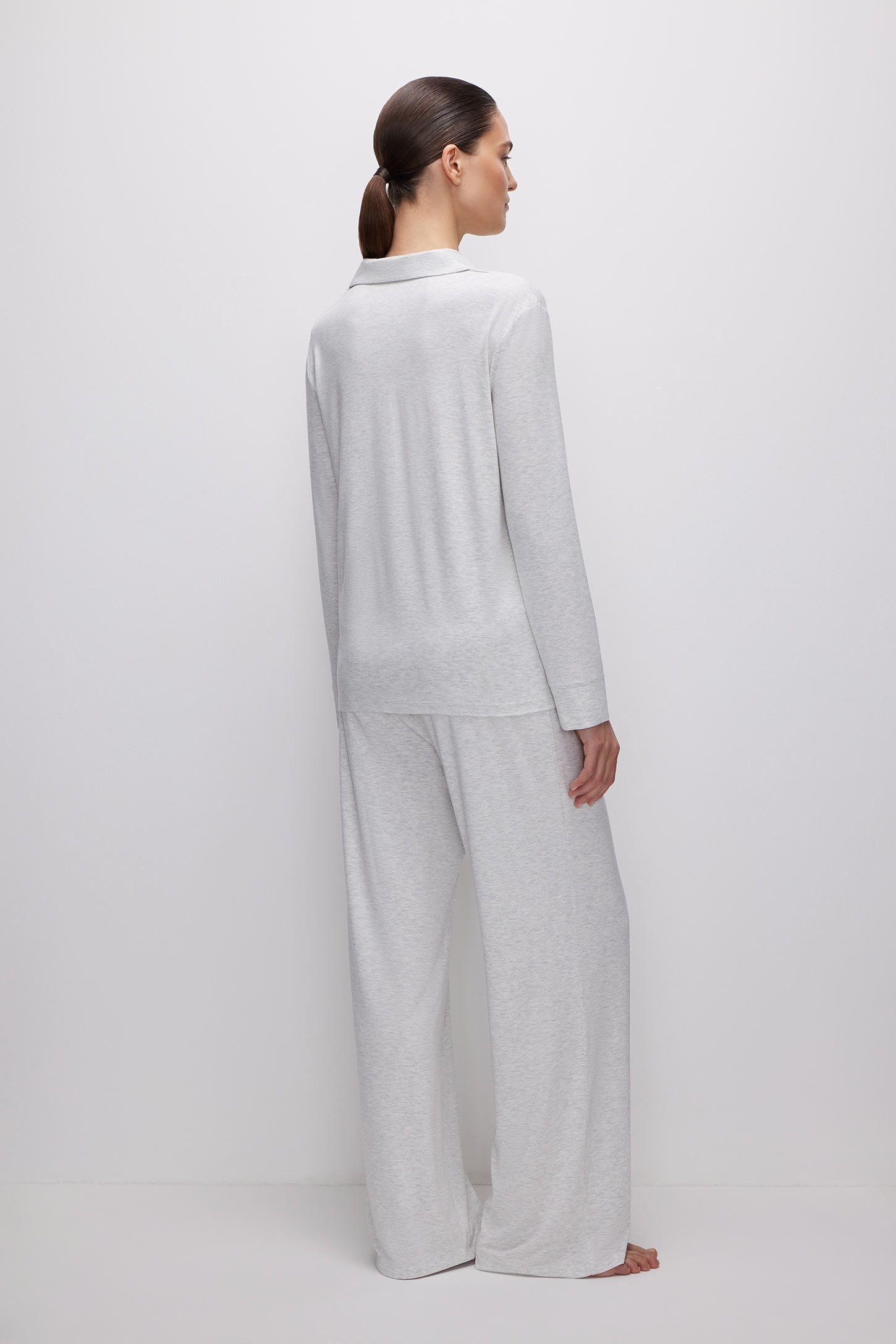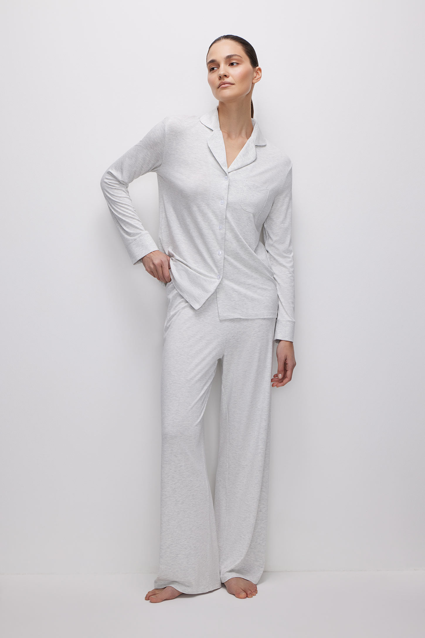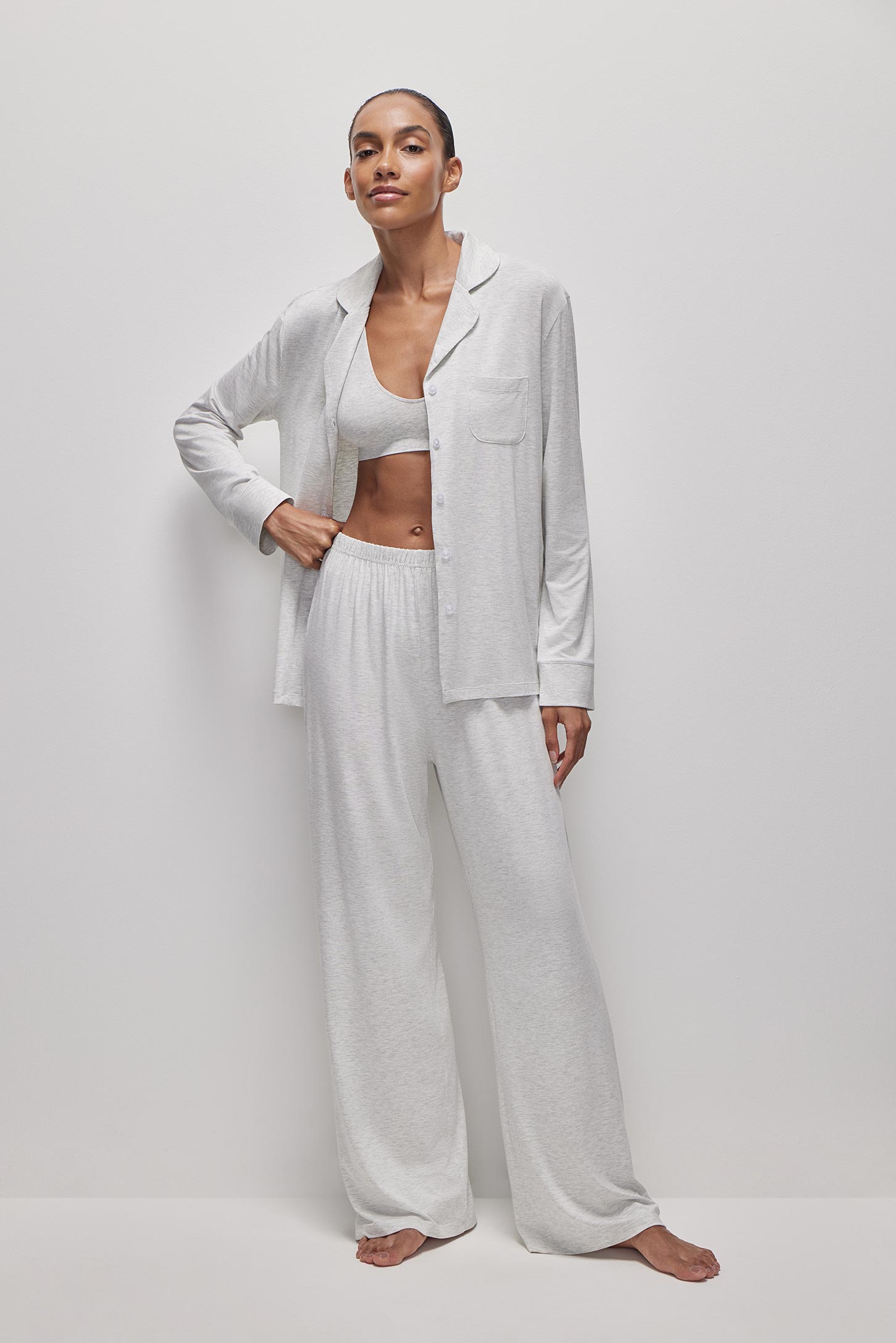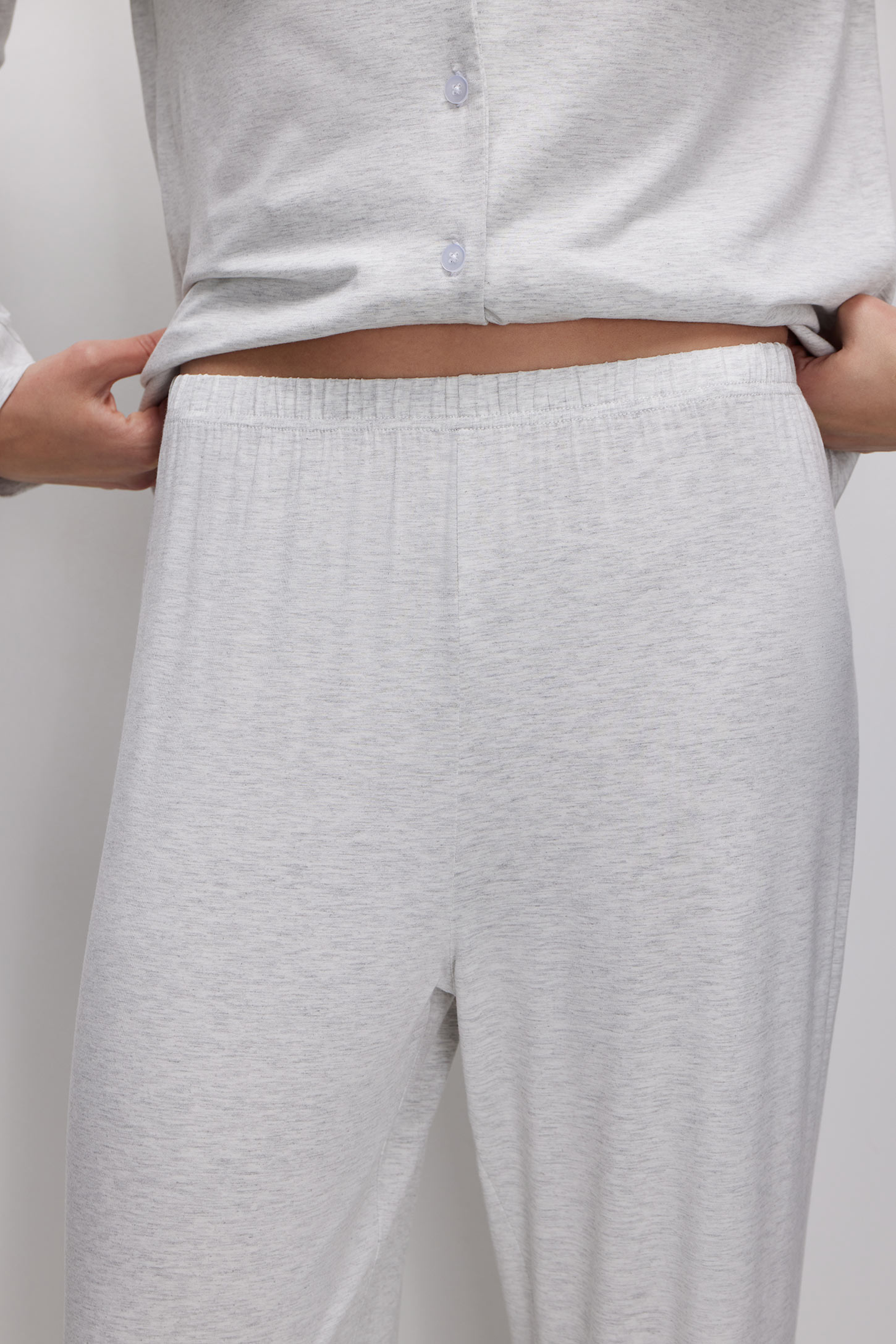 Свободные брюки изготовлены из шелковистого бамбукового трикотажа. Пояс с мягкой резинкой обеспечивает комфортную посадку изделия. Лаконичная модель идеальна для создания повседневных и домашних образов.