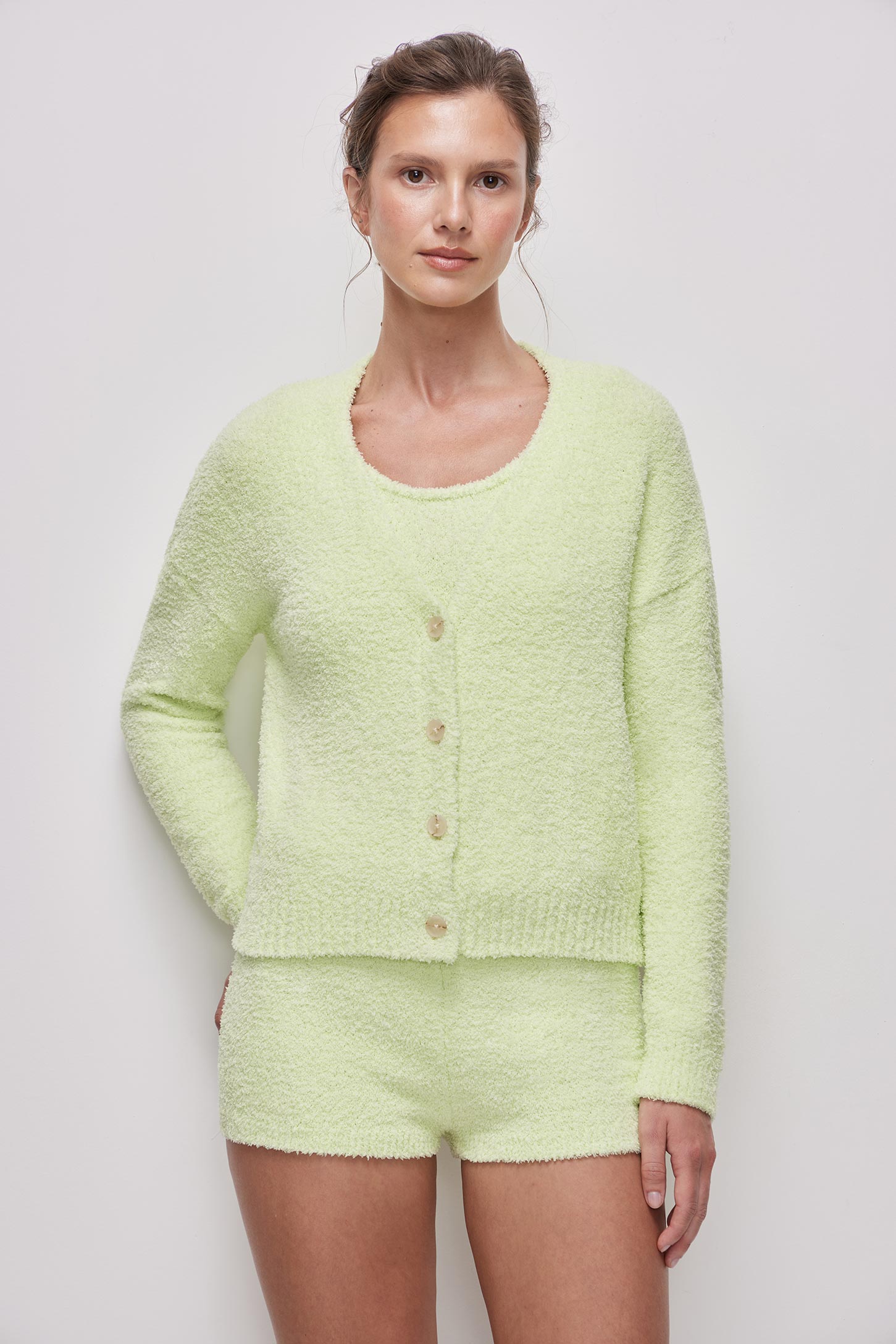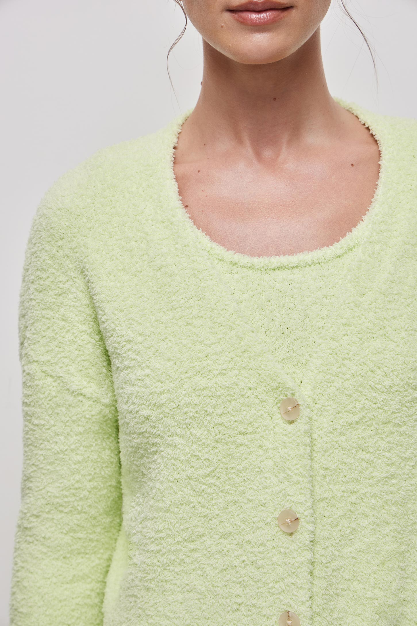 Изготовлен из мягкого фактурного полотна, приятного к телу. Прямой силуэт обеспечивает комфорт и подходит для разных типов фигуры. V-образная горловина визуально вытягивает силуэт и акцентирует зону декольте.