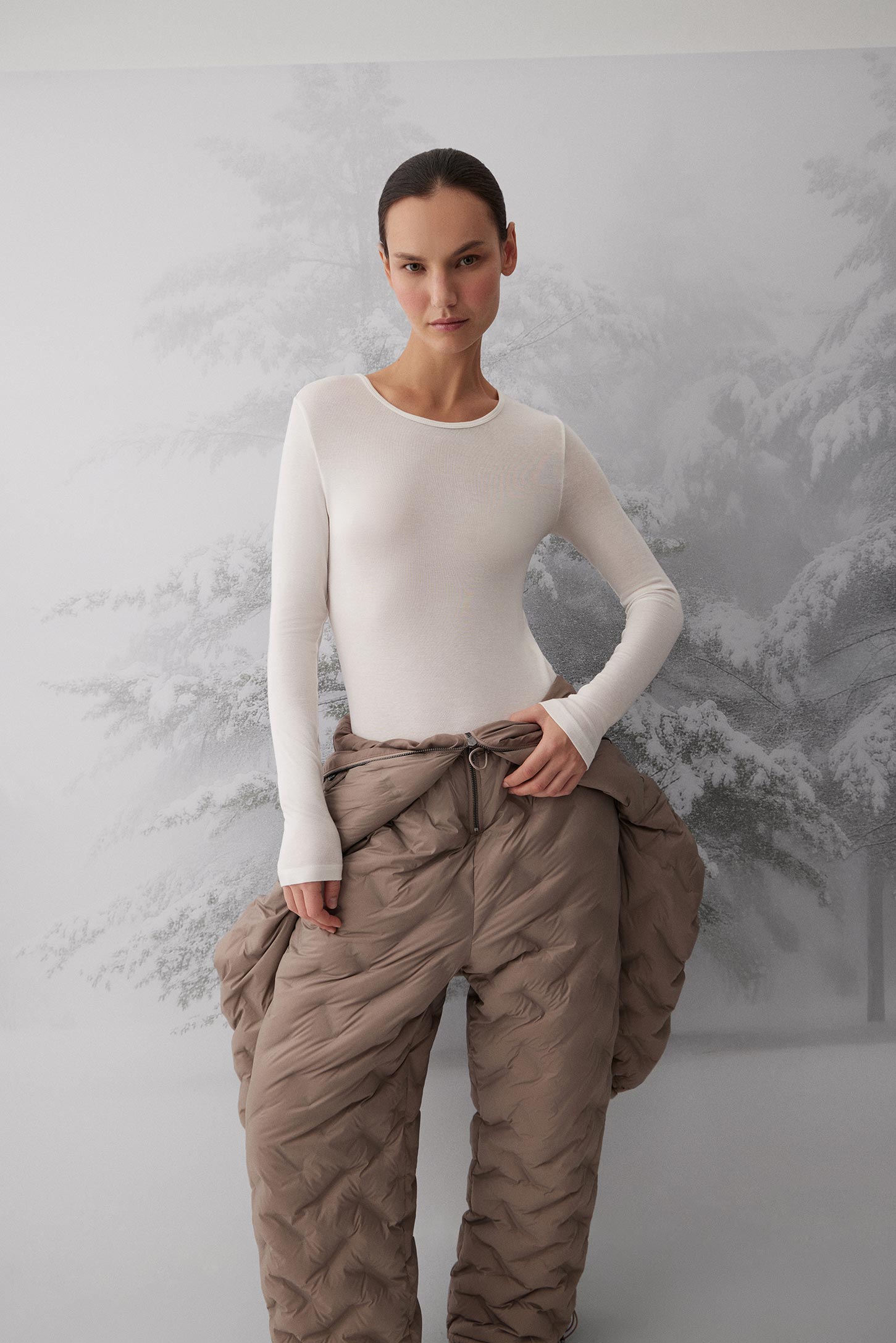 Лонгслив  прилегающего  силуэта из гладкого трикотажа. Может быть как самостоятельным элементом повседневного образа, так и первым слоем для прохладной погоды.  Рекомендуется дополнить лонгслив легинсами W5060002 из этого же материала.