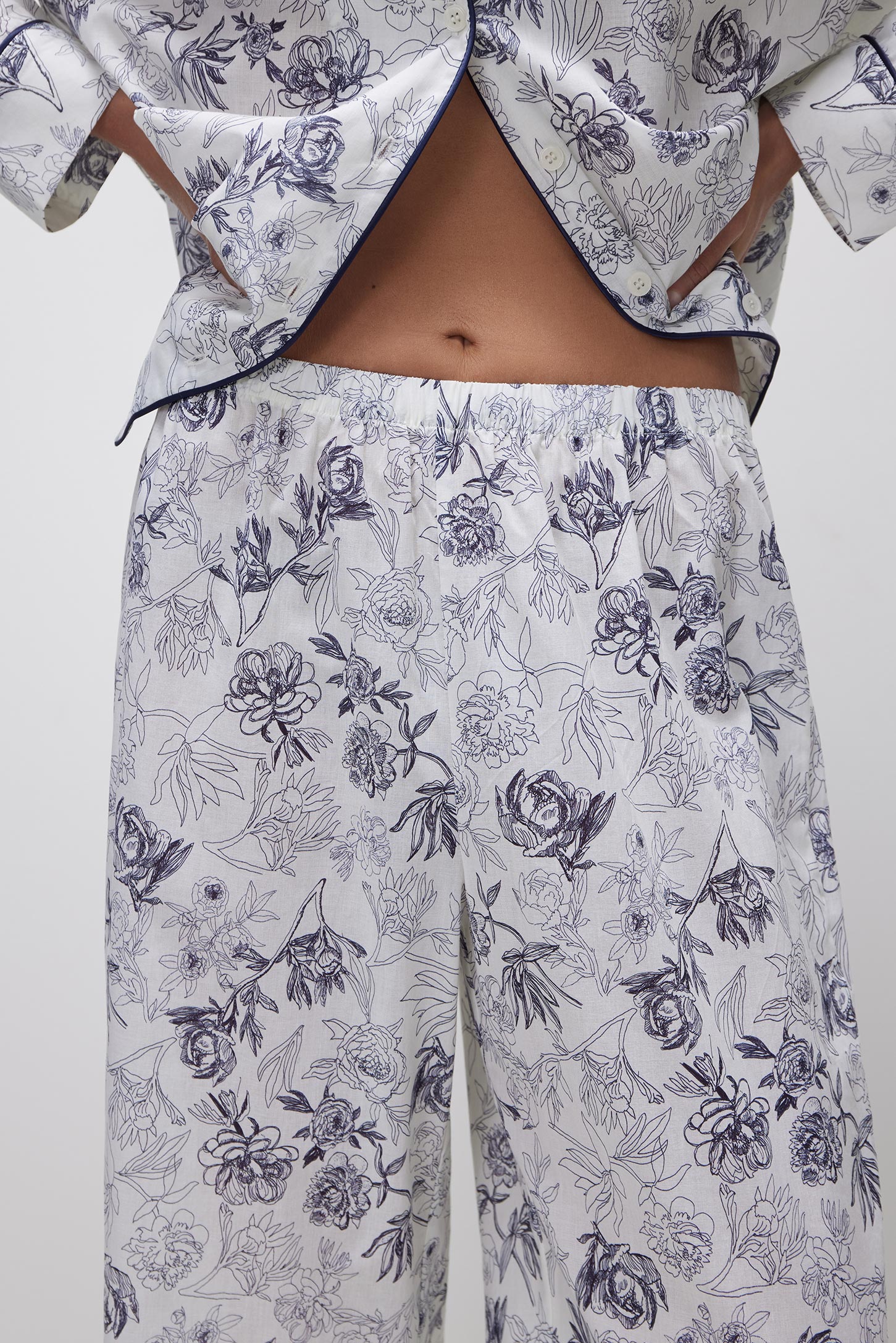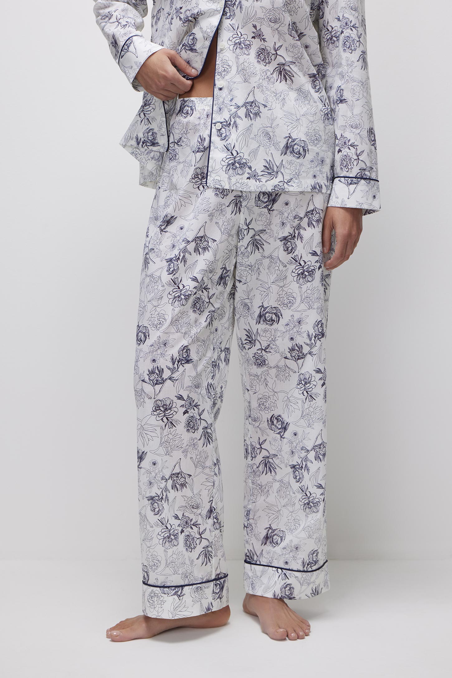 Брюки в пижамном стиле с цветочным принтом принтовые