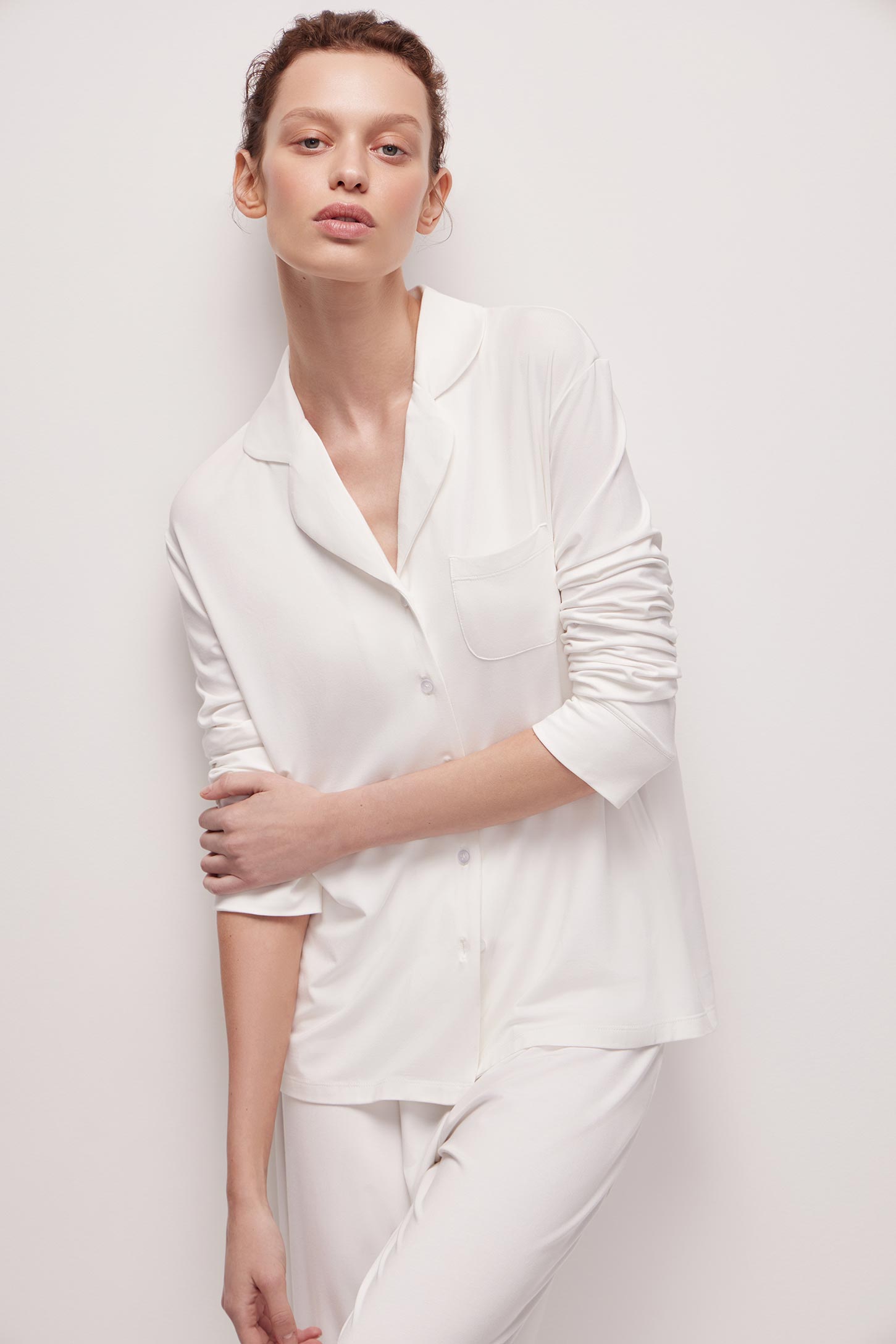 Рубашка из бамбукового трикотажа молочная