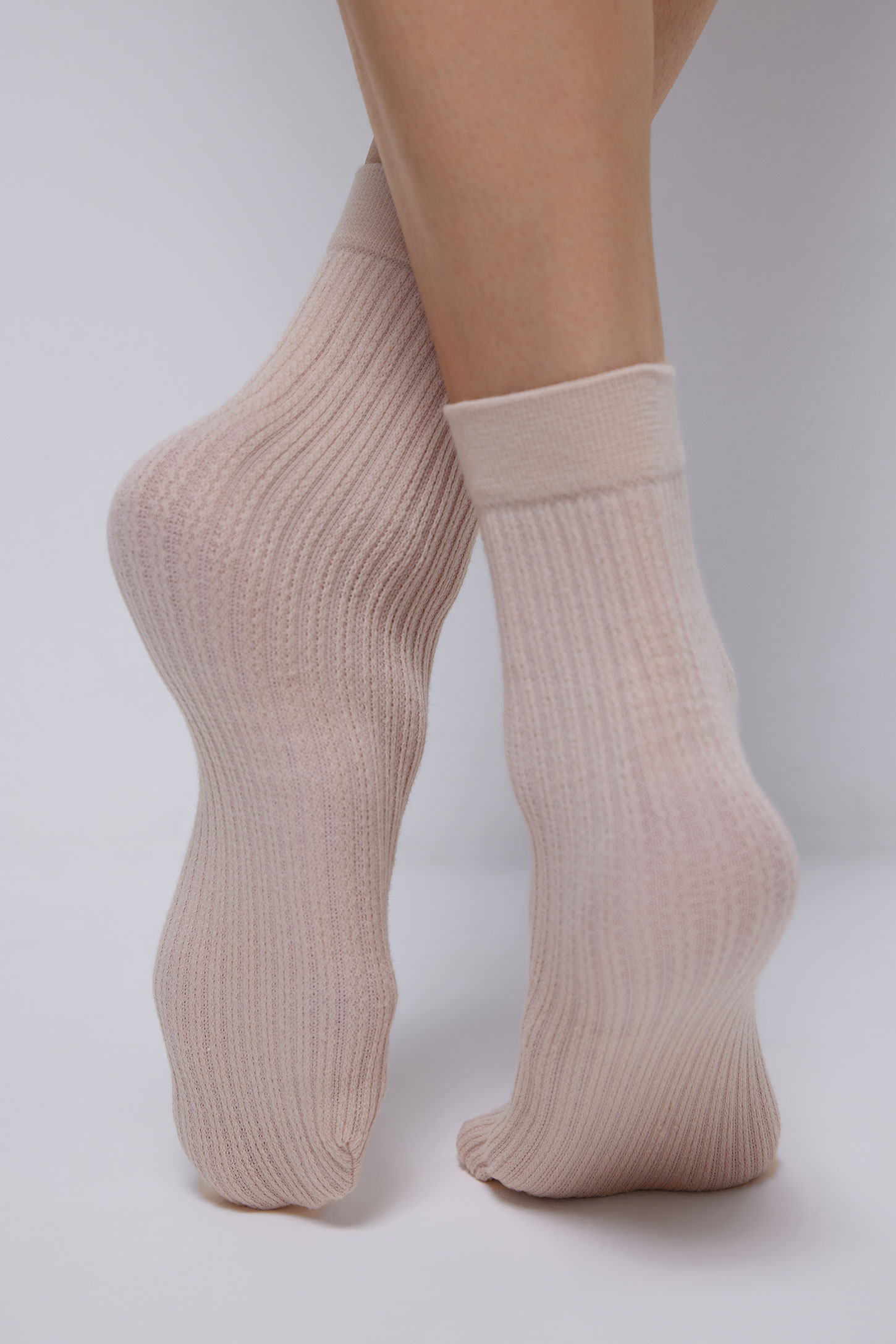 Носки в рубчик хлопковые Warm Hug розово-бежевые