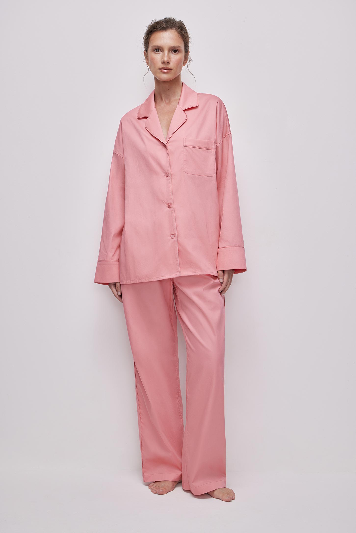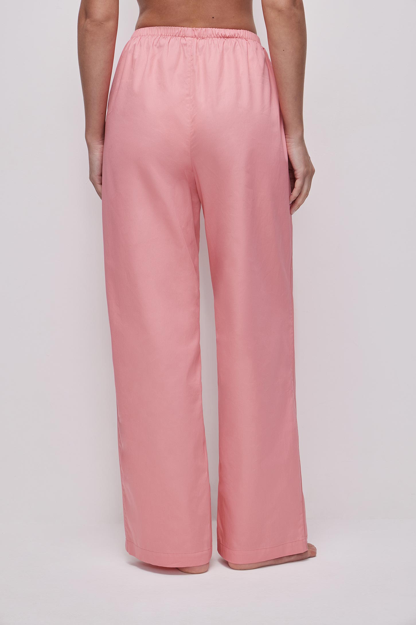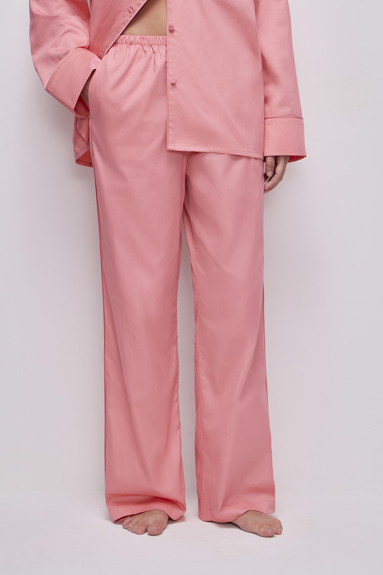 Пижамные брюки прямого силуэта с посадкой на линии талии. Пояс на мягкой резинке обеспечивает комфортную посадку изделия на разные типы фигур. Модель разработана с карманами в боковых швах. Брюки декорированы кантом в цвет основного полотна по боковым швам.