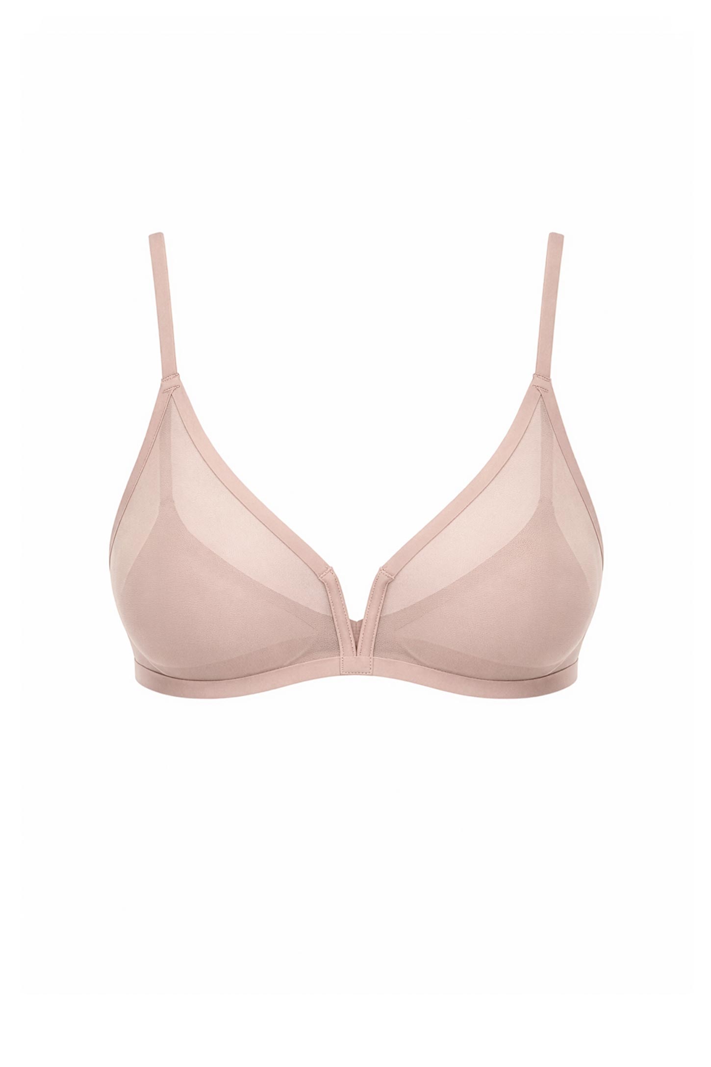 Бюстгальтер на тонких бретелях с мягкой чашкой и V-образным каркасом выполнен из невесомой сетки по современной технологии с минимальным количеством швов. Объем на грудь так же сформован что позволило выполнить этот бюстгальтер без вытачек. Сетка обладает хорошей растяжимостью что позволяет ей отлично прилегать. Регулируемые по длине бретели, застежка по центру спинки и косточки обеспечат хорошую поддержку.