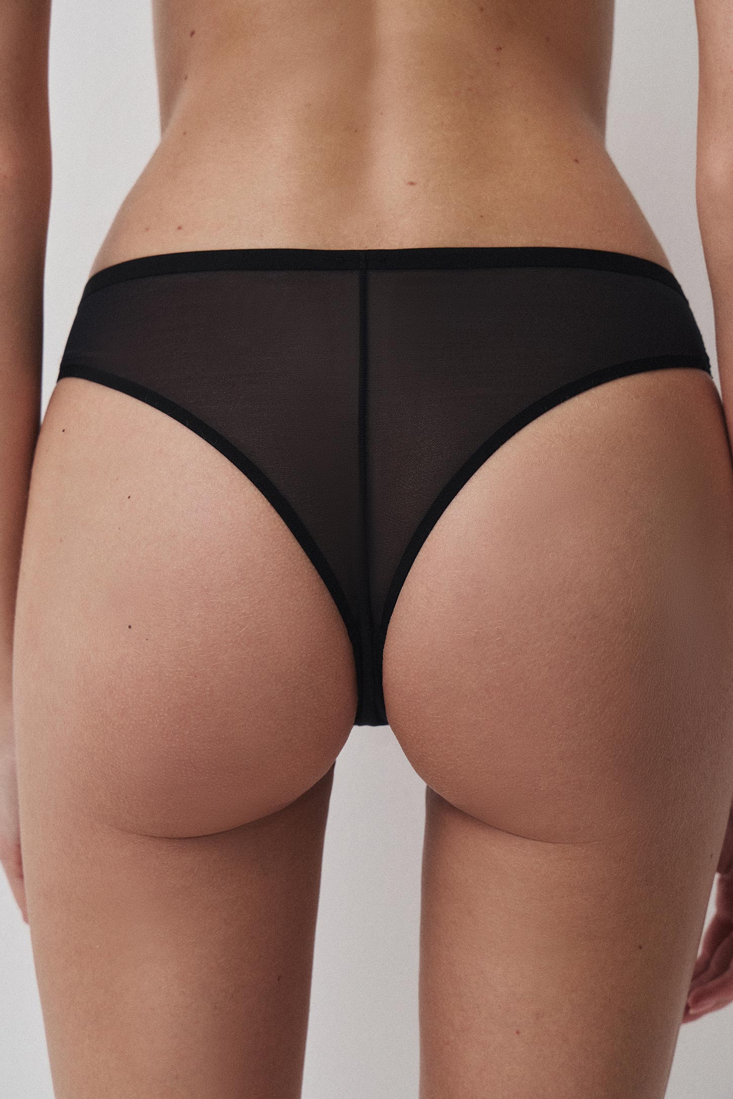 Трусы-бразилиано со средней посадкой из сетки. Сетка обладает хорошей растяжимостью что позволяет ей отлично прилегать. Модель дополнена гигиенической ластовицей из 100% хлопка.
