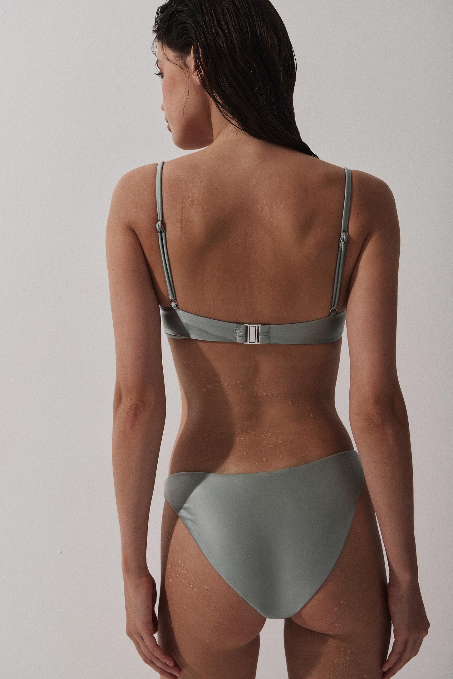 Купальные трусы-бразилиано с высокой посадкой из гладкого трикотажа с глянцевым эффектом. Трусы имеют подкладку, благодаря которой модель не просвечивает при намокании.