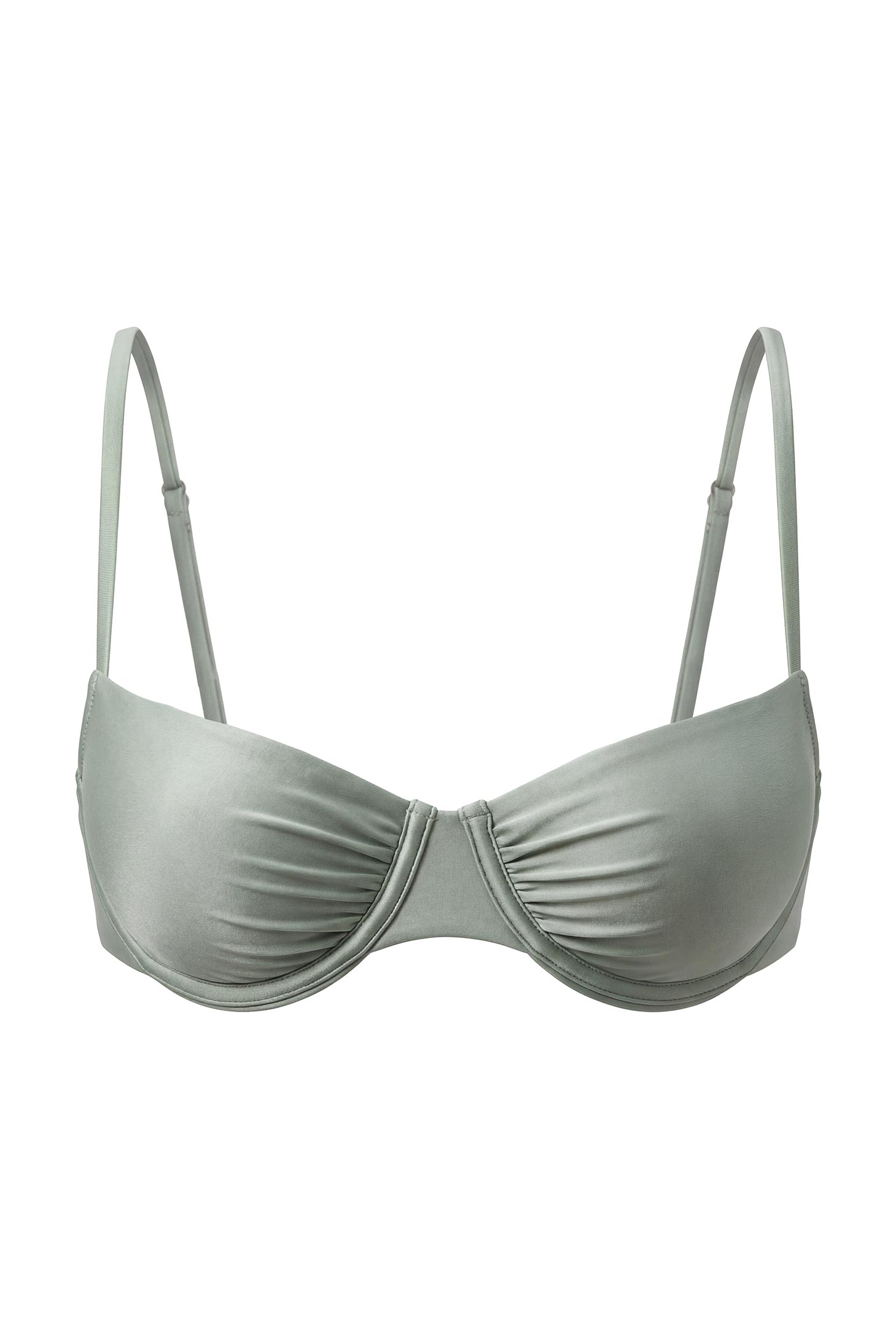 Купальный топ из гладкого трикотажа с глянцевым эффектом со сборками на чашках. Регулируемые по длине бретели, застежка по центру спинки и косточки обеспечат хорошую поддержку. Топ полностью на подкладке. Модель не имеет чашек-вкладышей.