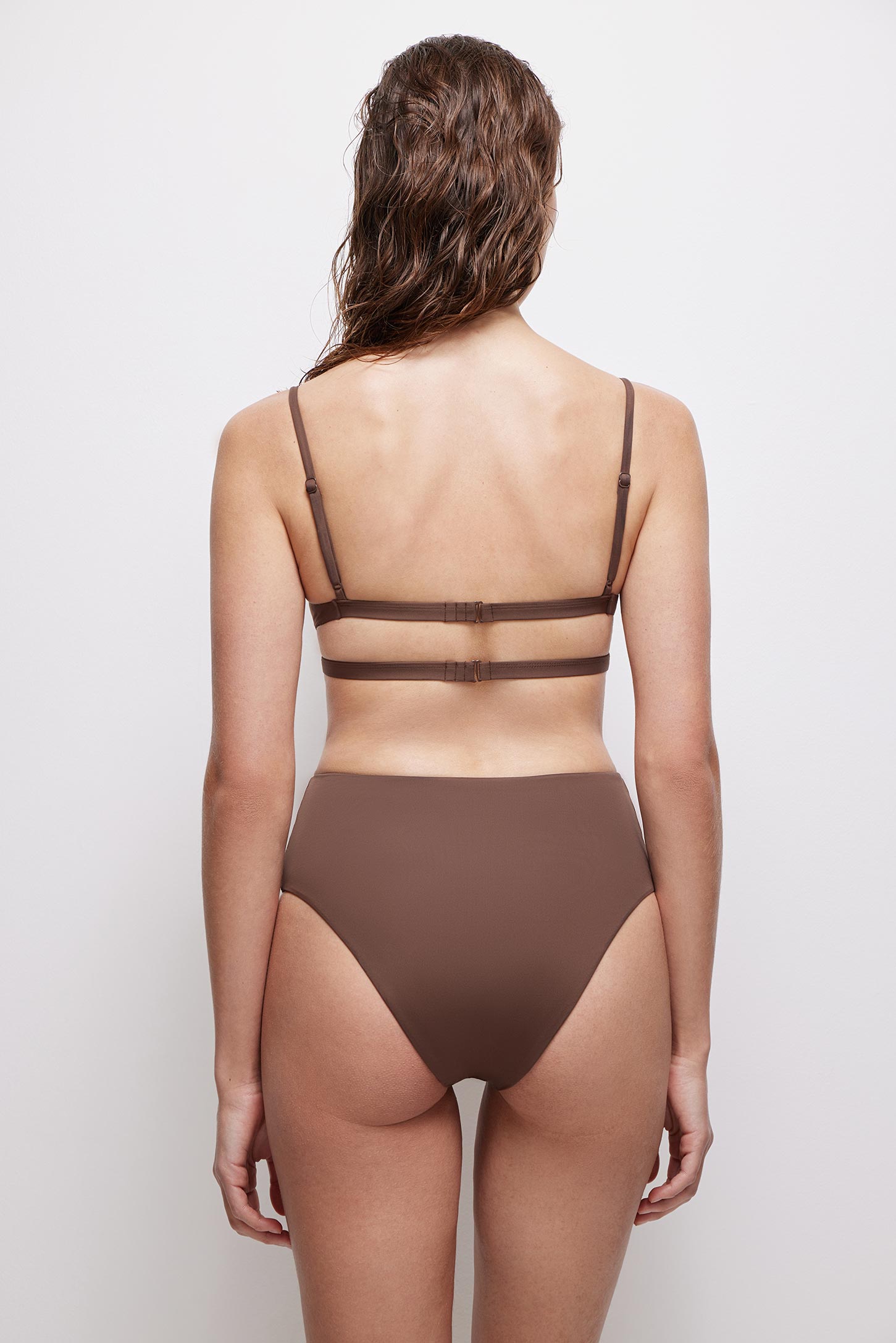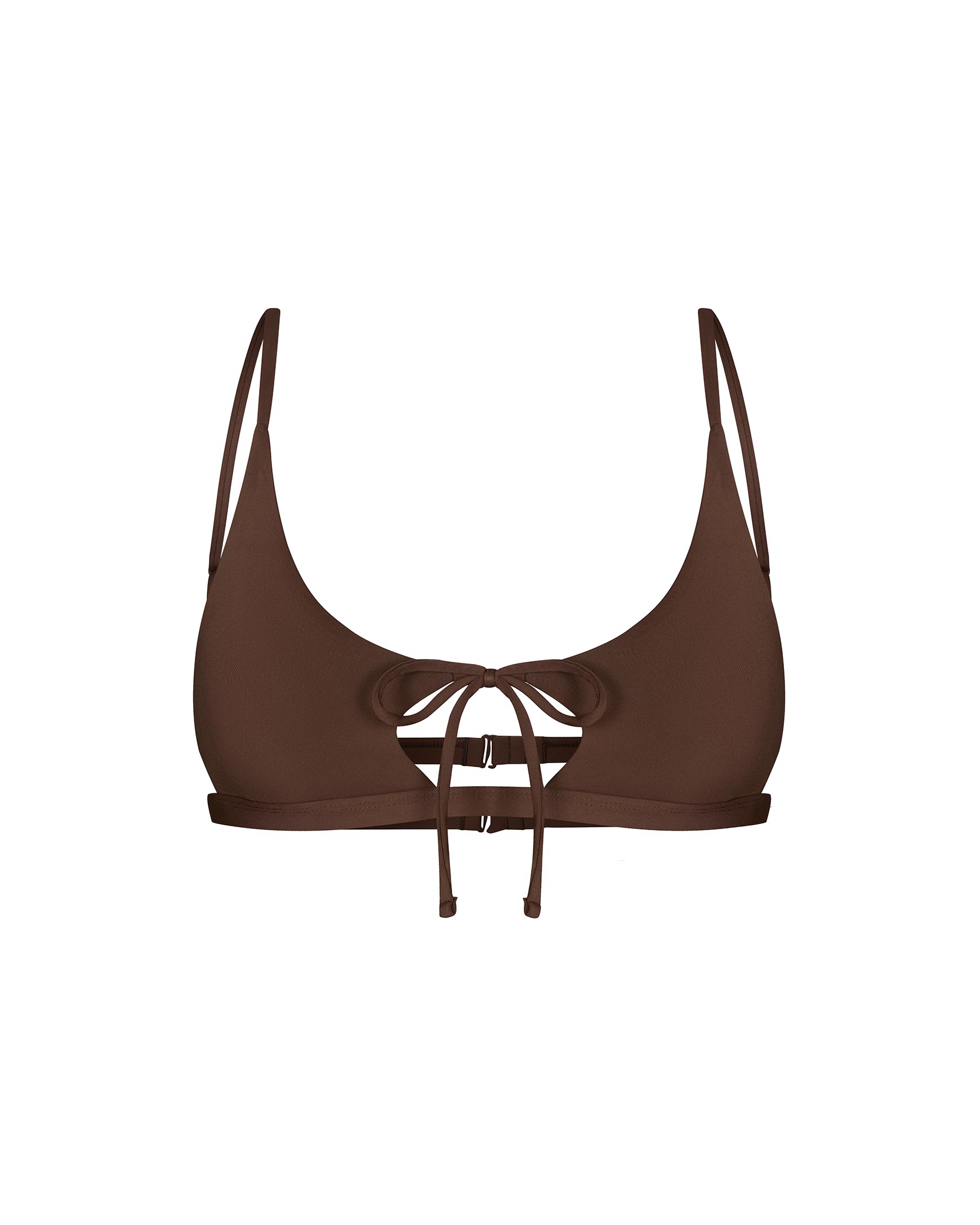 Купальный топ с вырезом и завязкой на груди трюфельный