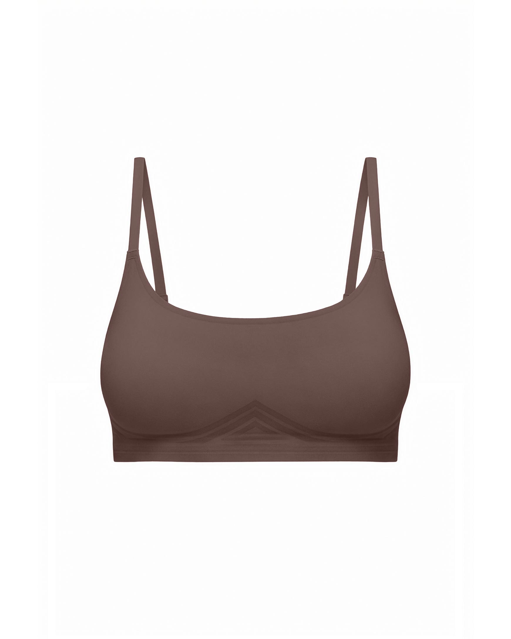 Бюстгальтер топ из тонкого полупрозрачного материала, без швов, с обработкой краев по технологии lasercut на регулируемых бретелях, с застежкой по центру спинки.