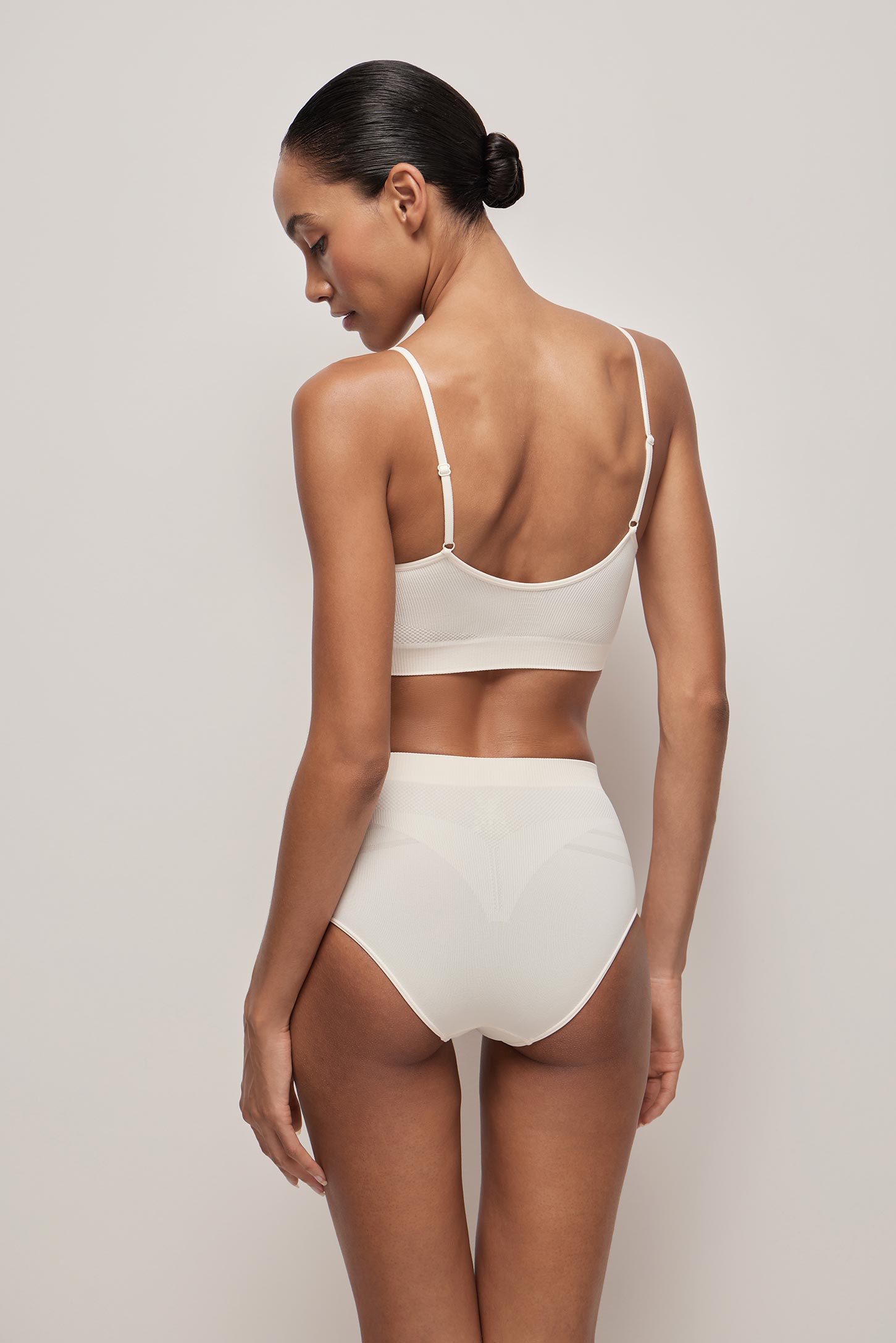Шелковистый топ на тонких бретелях из микрофибры выполнен по бесшовной технологии. Для наибольшего комфорта и поддержки топ имеет вставки в рубчик на спине и цельновязанную резинку под грудью. Модель дополнена съемными чашками-вкладышами. Отличный вариант для повседневной носки, когда требуется лёгкая поддержка груди и свобода движений. Подходит для чашки А В С.