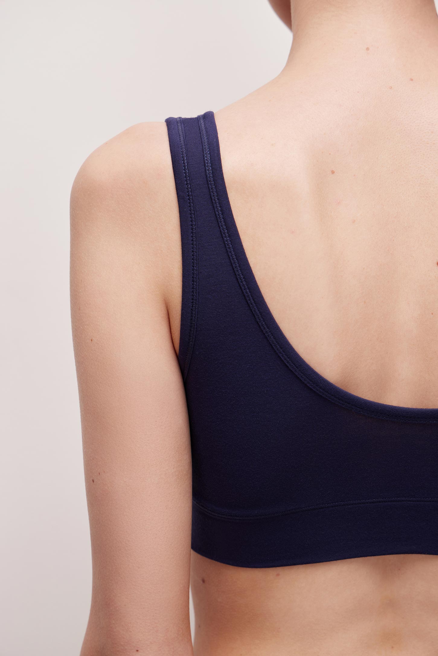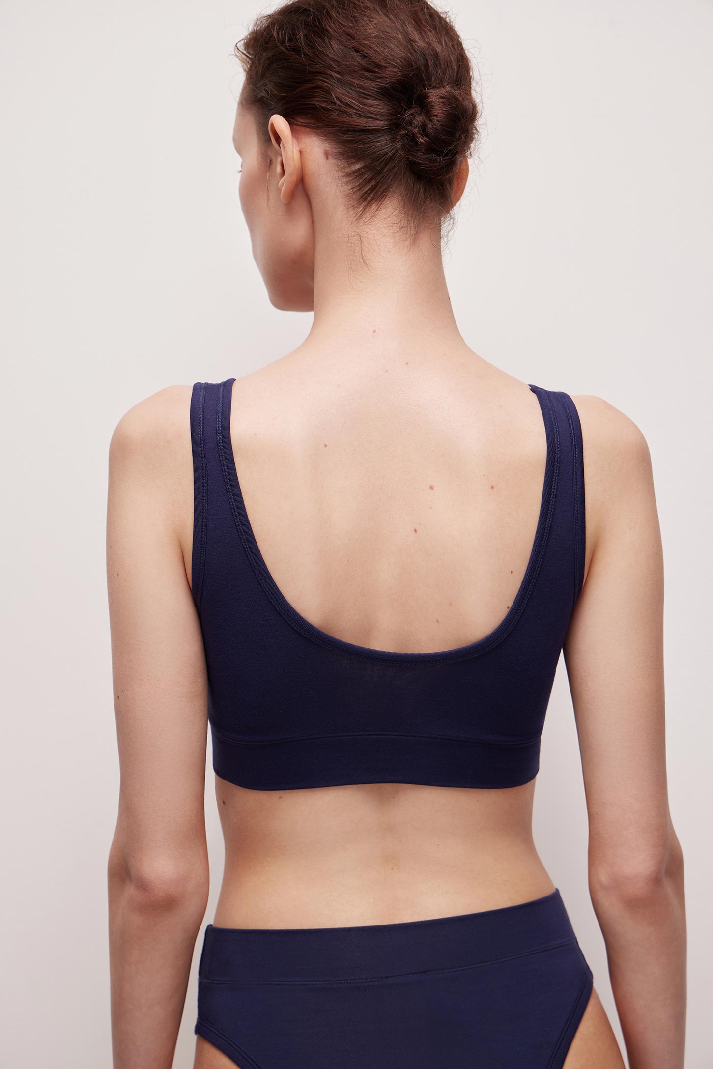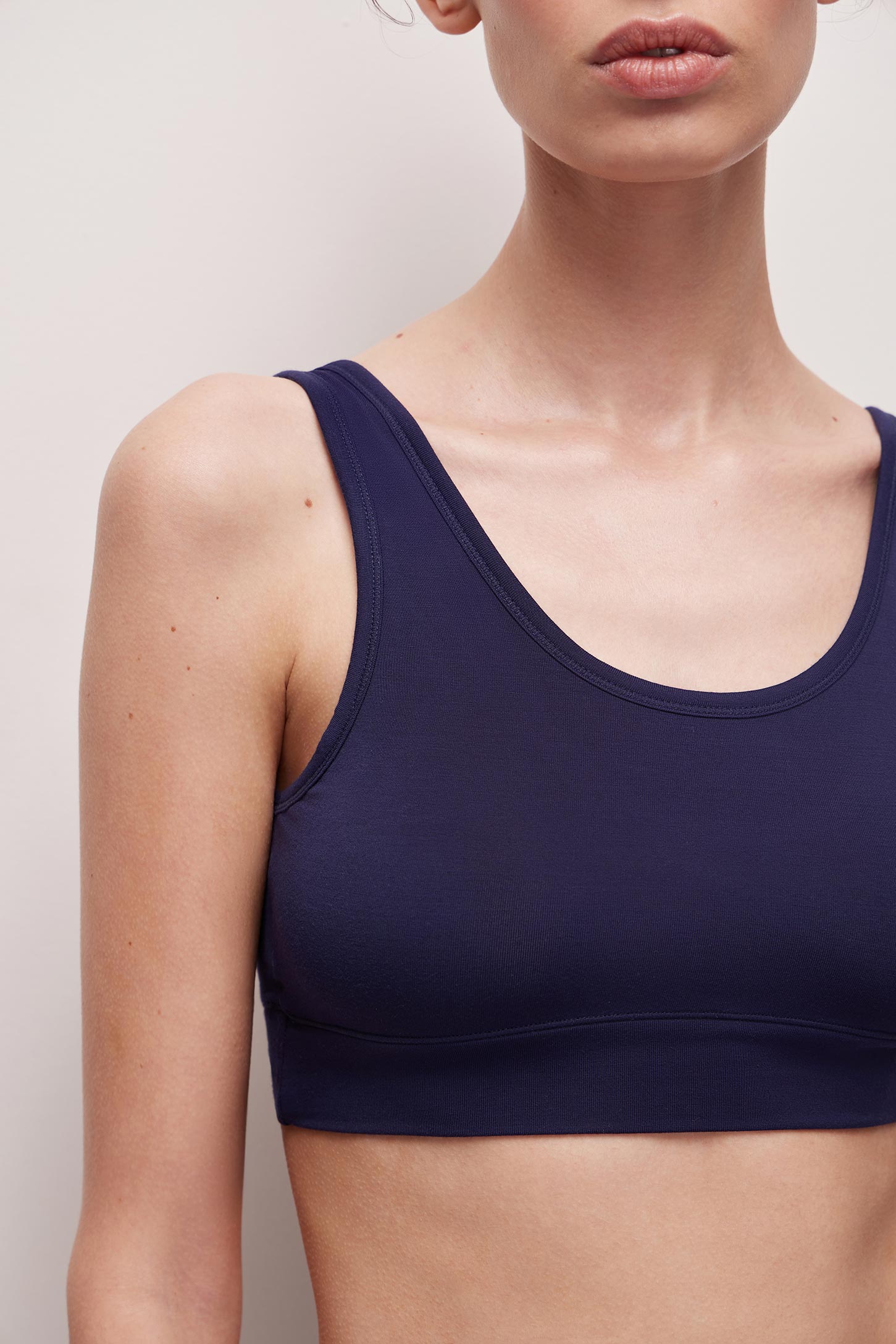 Топ на широких бретелях без чашек-вкладышей, изготовлен из шелковистого бамбукового трикотажа. Широкий пояс по низу изделия гарантирует комфортную посадку по фигуре и обеспечивает фиксацию. Передняя часть топа дополнена подкладкой.