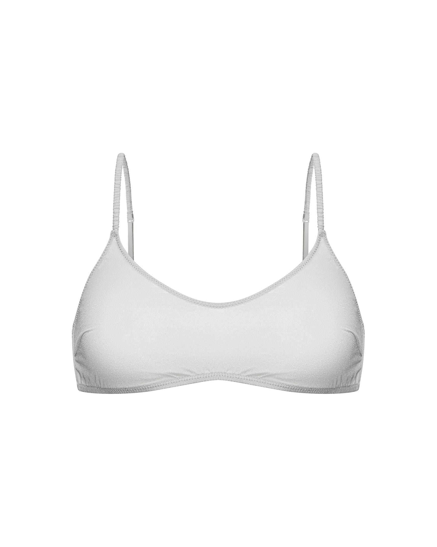 Бюстгальтер из полупрозрачного шифона на тонких регулируемых бретелях. По краям чашек и по спинке декоративный зигзаг. Модель с застежкой на крючки по центру спинки. Изделие без подкладки и чашек-вкладышей.