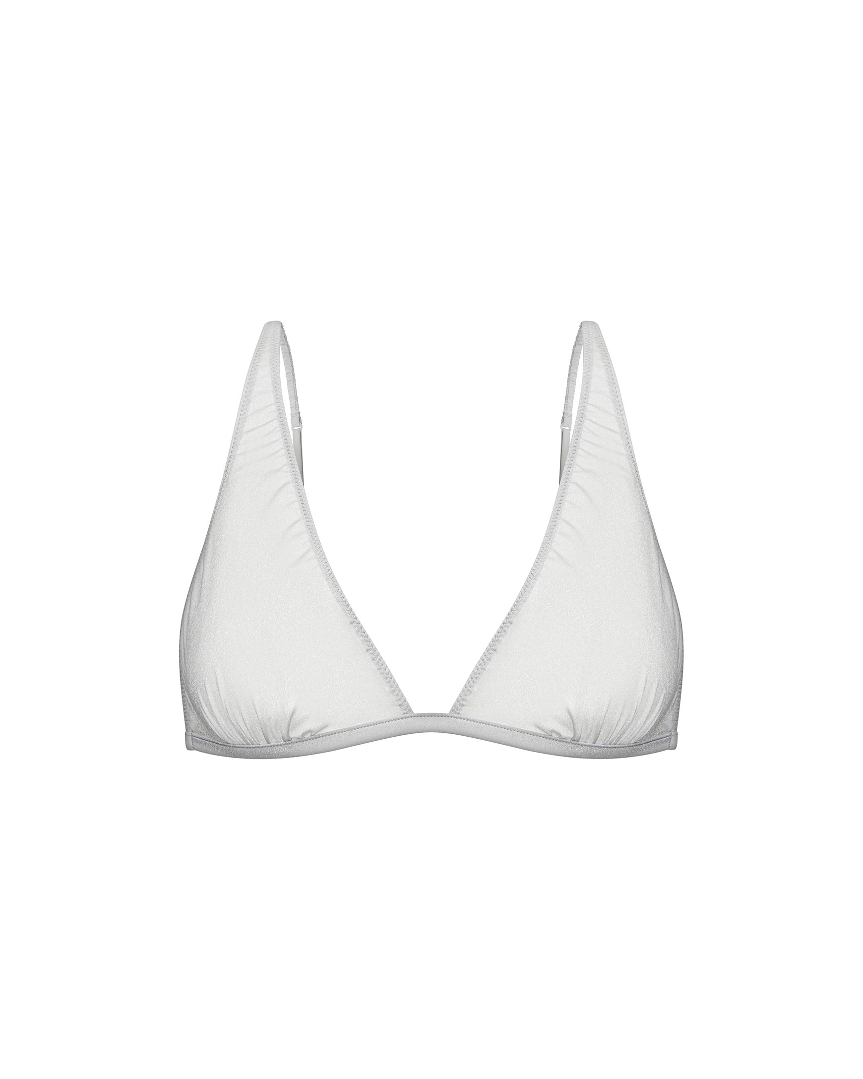 Бюстгальтер из полупрозрачного шифона на тонких регулируемых бретелях. Модель с треугольной формой чашек со сборками. По краям чашек декоративный зигзаг. По низу изделия узкий пояс, по спинке эластичная резинка, образующая сборку по поясу. Модель с застежкой на крючок по центру спинки. Изделие без подкладки и чашек вкладышей.