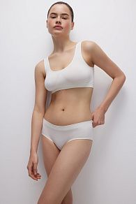 боковых швов. Трикотаж очень приятен на ощупь и обладает хорошей воздухопроницаемостью. Регулируемые по длине бретели, упругая резинка по низу изделия и анатомические фактурные вставки в рубчик оказывают естественную поддержку груди.