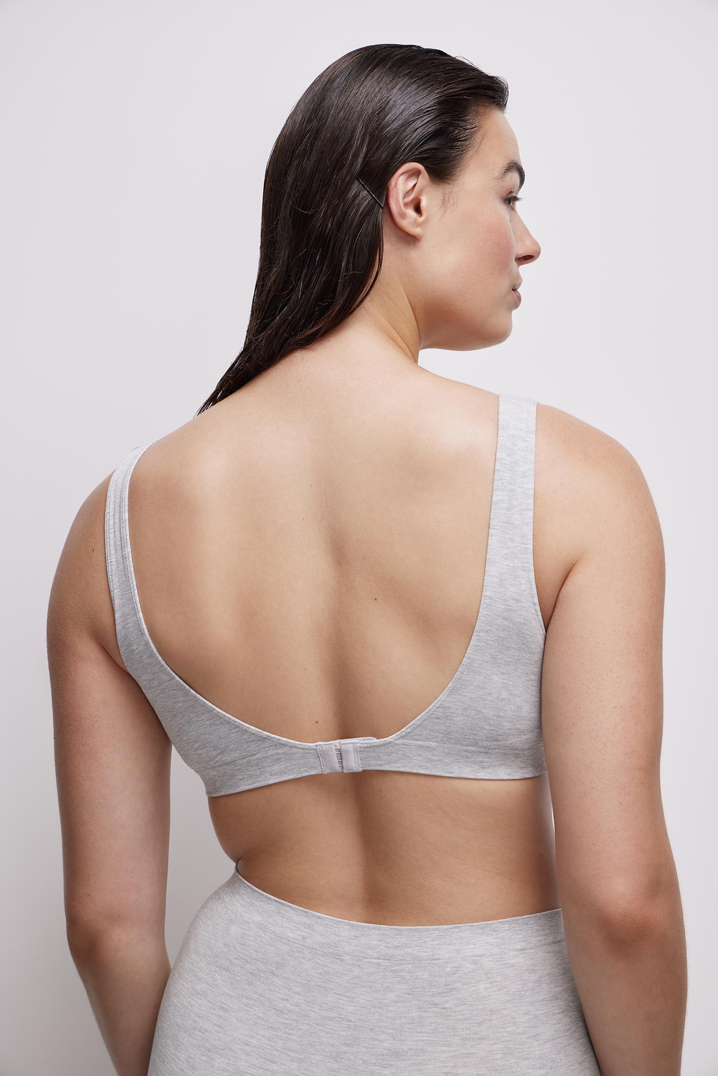 Бюстгалтер на широких бретелях без чашек, без подкладки с V-образным вырезом горловины. По центру спинки есть застежка. Бюстгальтер изготовлен из гладкого и шелковистого бамбукового трикотажа по современной технологии без боковых швов. Трикотаж очень приятен на ощупь и обладает хорошей воздухопроницаемостью. Регулируемые по длине бретели, упругая резинка по низу изделия и анатомические фактурные вставки в рубчик оказывают естественную поддержку.