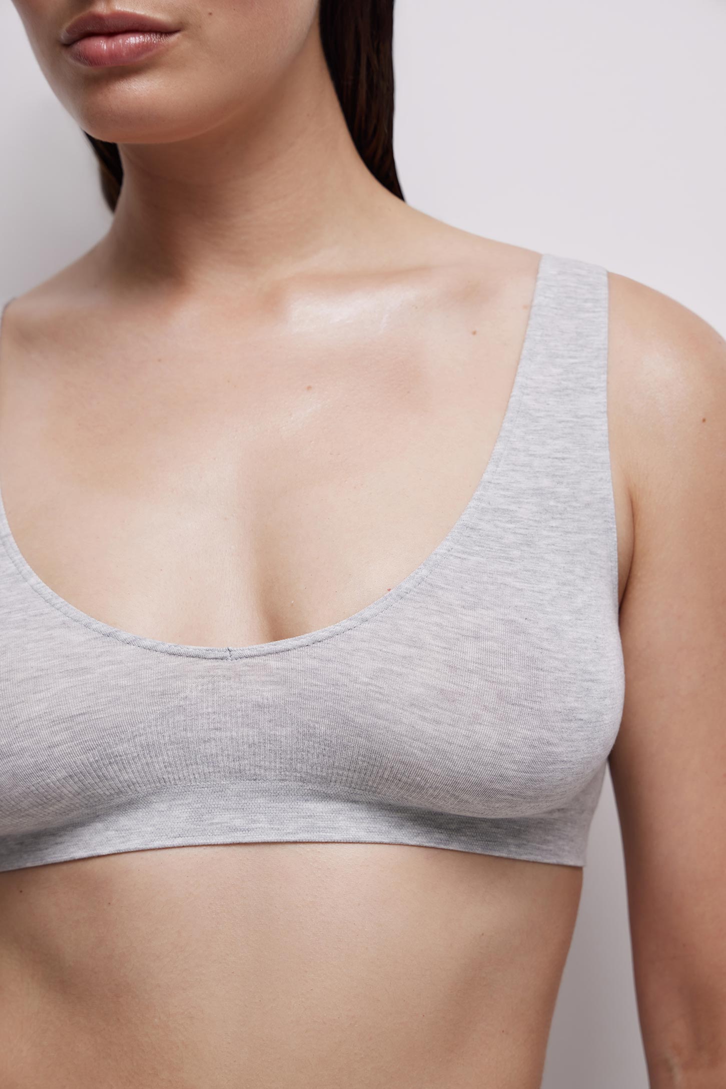 Бюстгалтер на широких бретелях без чашек светло-серый меланж