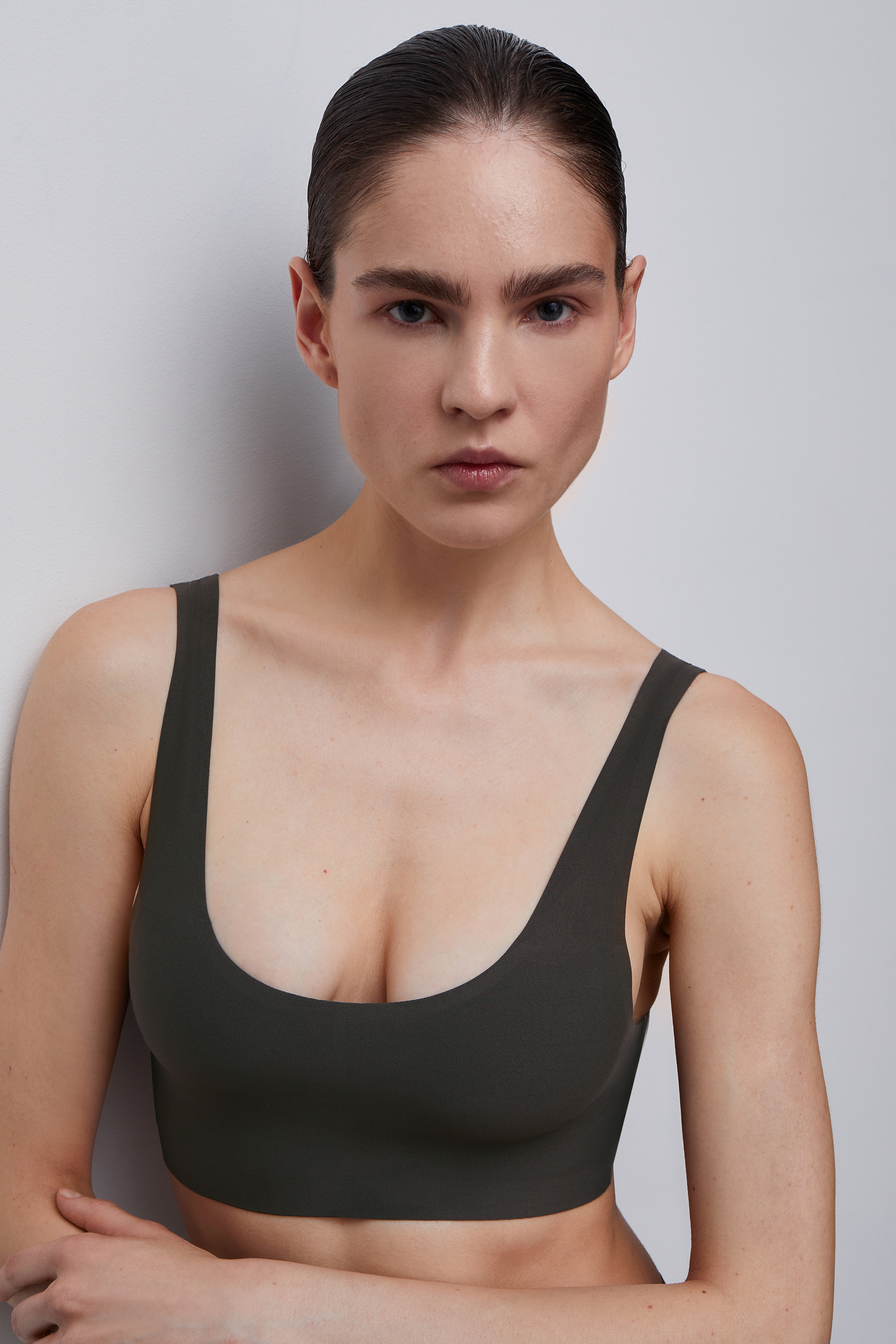 Повседневный топ на широких бретелях изготовлен из сверхтонкого и эластичного капронового трикотажа по технологии “Lasercut” с высококачественной клеевой обработкой срезов. Передняя часть топа выполнена на подкладке и дополнена карманами для чашек, которые продаются отдельно. Отсутствие швов позволяет изделию оставаться незаметным под одеждой, обеспечивает максимальный комфорт и идеальное облегание фигуры. Идеально подходит для повседневной носки, а также в качестве белья для занятий спортом или йогой.