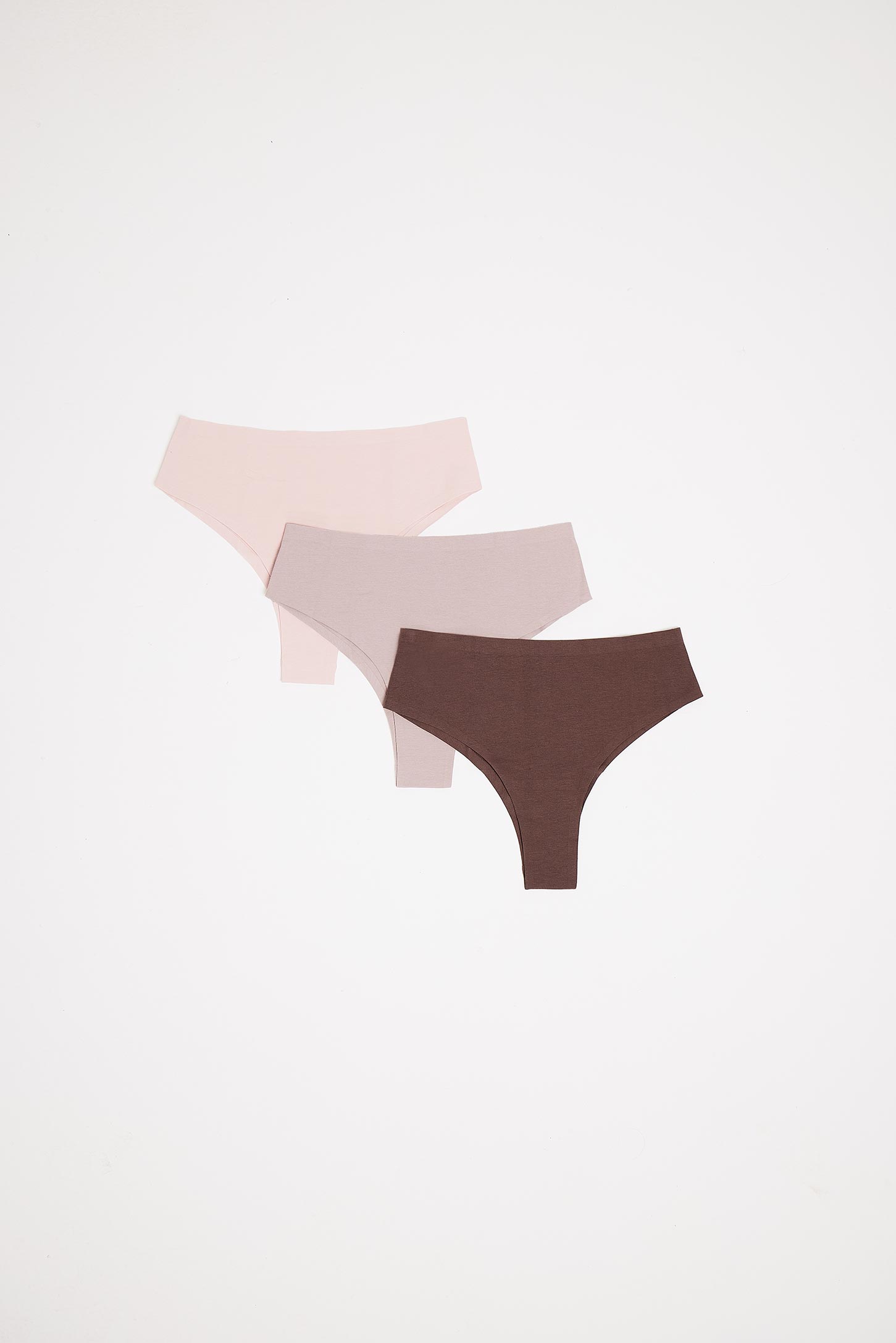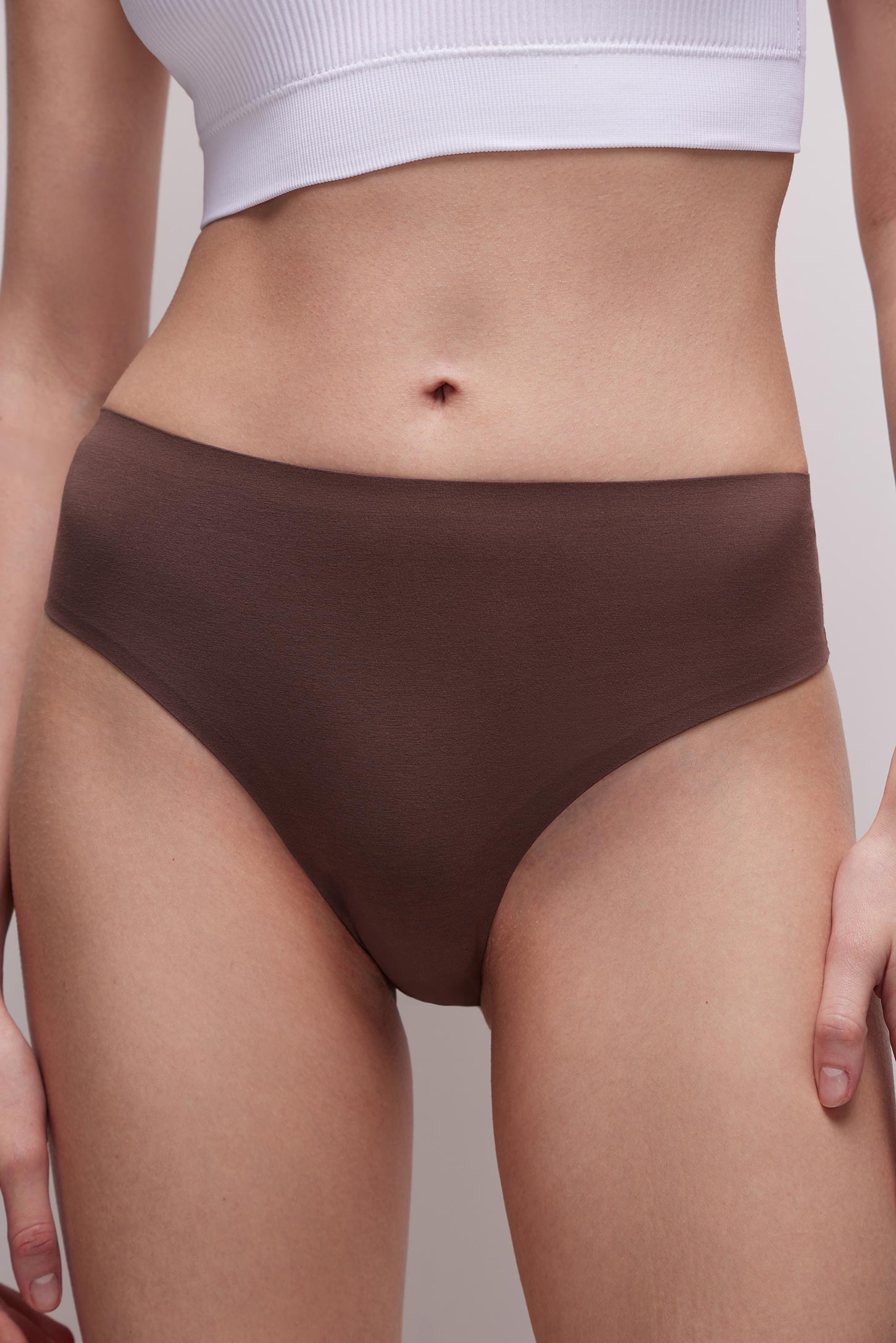 Трусы-бразильяно с высокой посадкой светло-бежевые