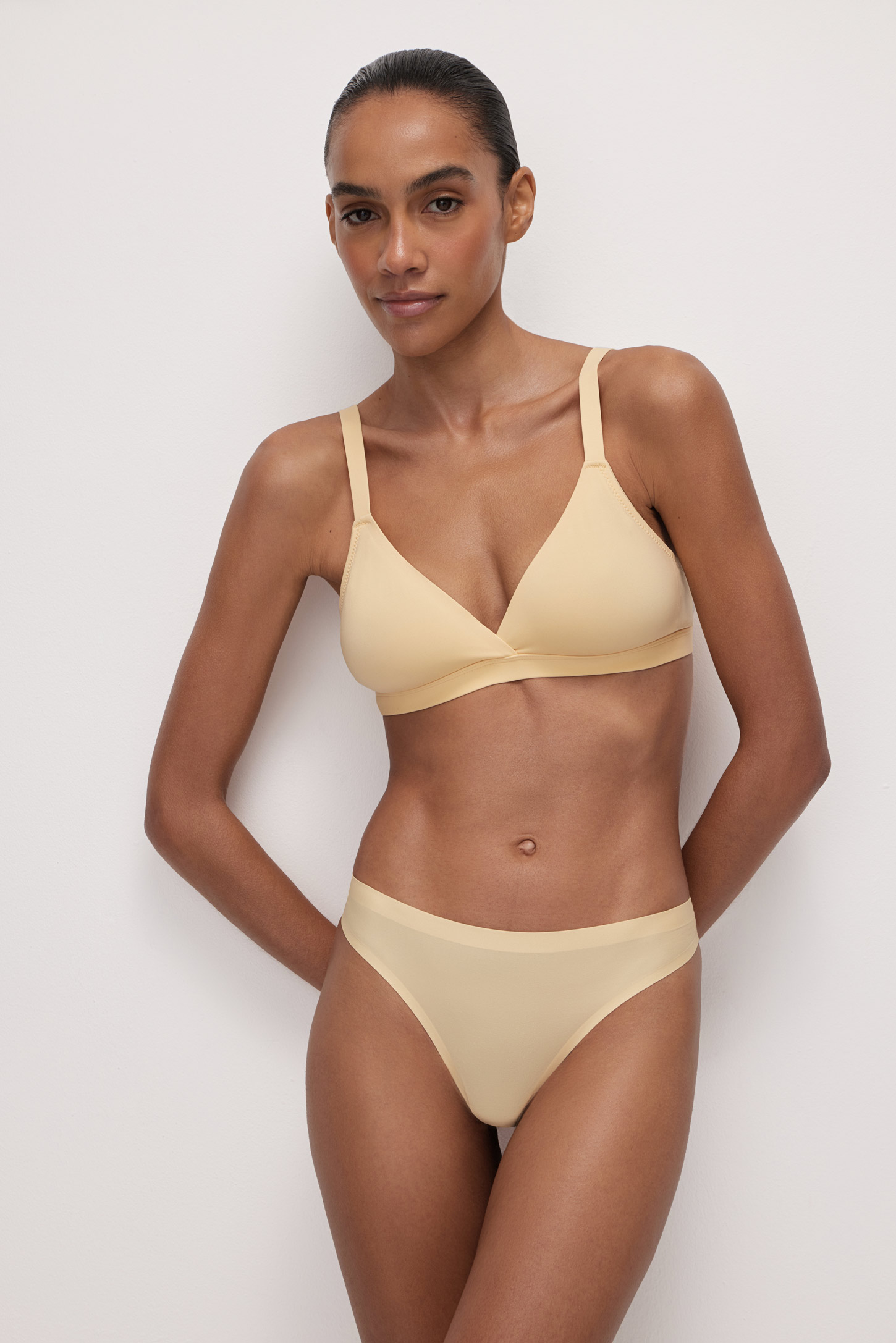Универсальные трусы-стринги со средней посадкой изготовлены из сверхтонкого и эластичного капронового трикотажа с высококачественной клеевой обработкой срезов. Модель дополнена мягкой гигиенической ластовицей из 100% хлопка.