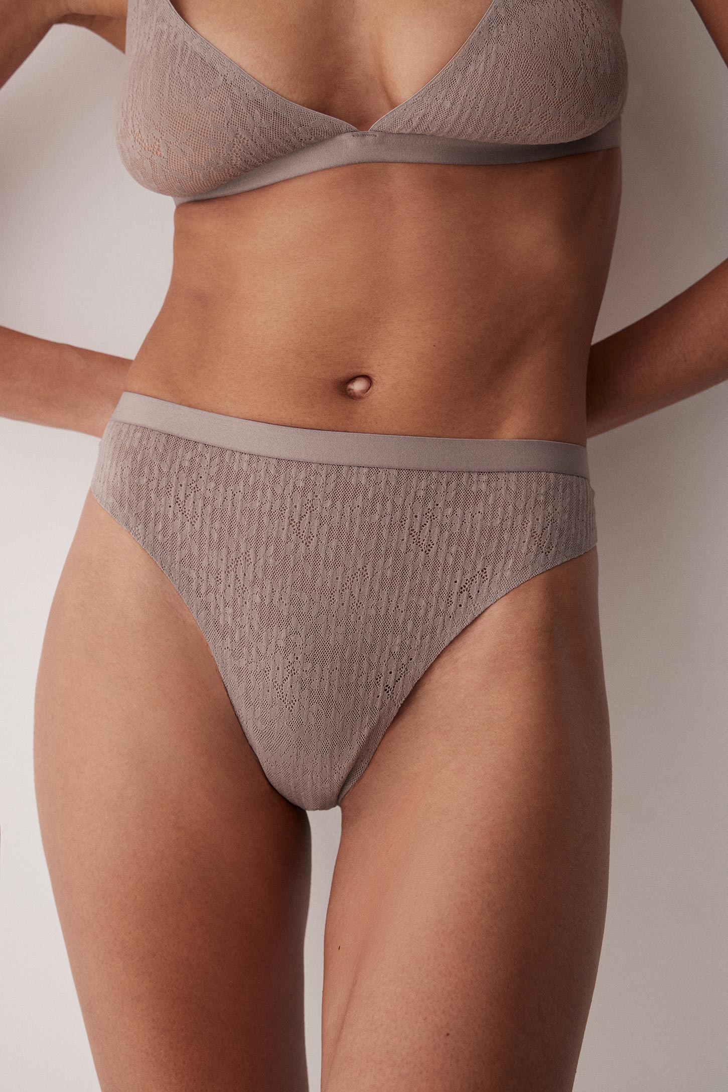 Трусы-стринги с высокой посадкой изготовлены из эластичного кружева с цветочным рисунком. Широкая матовая резинка по талии выполнена из эластичного материала. Вырезы для ног обработаны эластичной тесьмой. Модель дополнена гигиенической ластовицей из 100% хлопка. Трусы-стринги красиво открывают ягодицы, идеально подходят для повседневной носки.