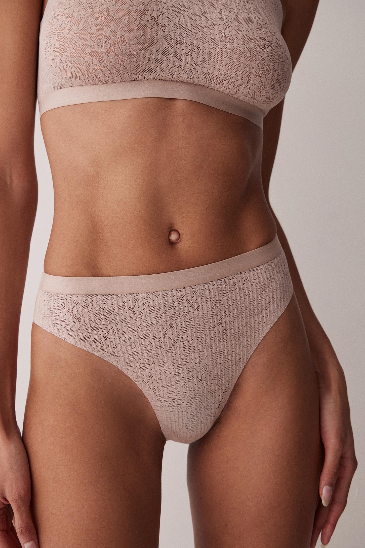 Трусы-стринги Цветочное кружево / Lace Flower пудрово-розовые