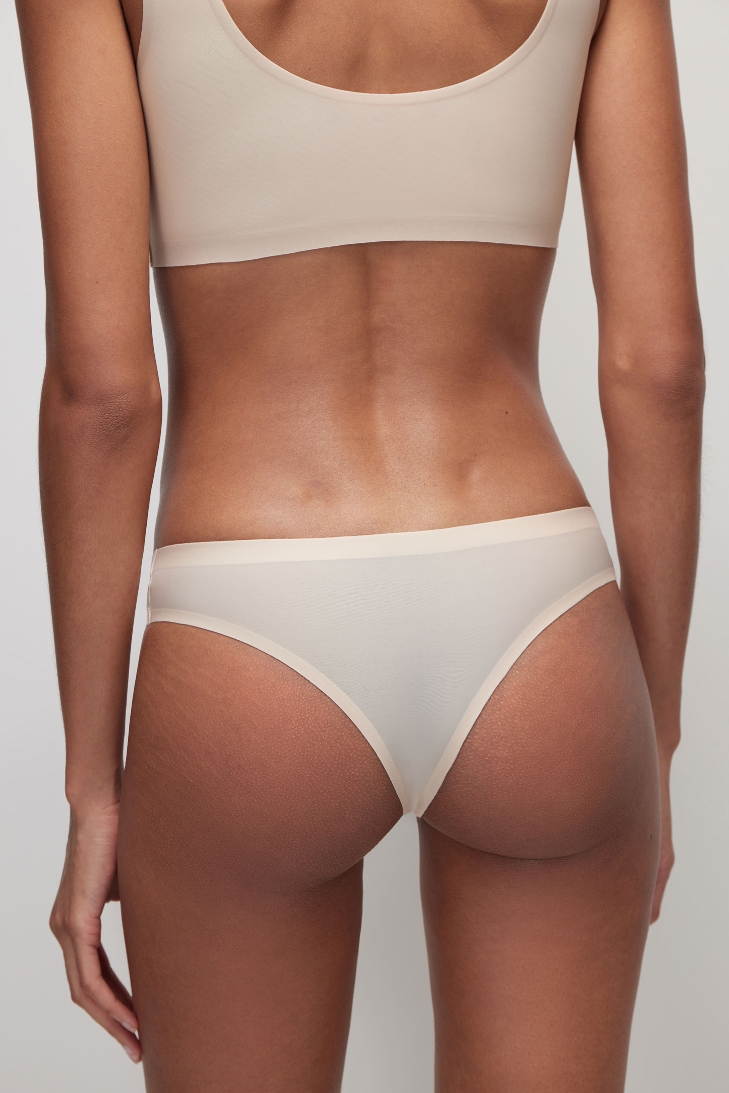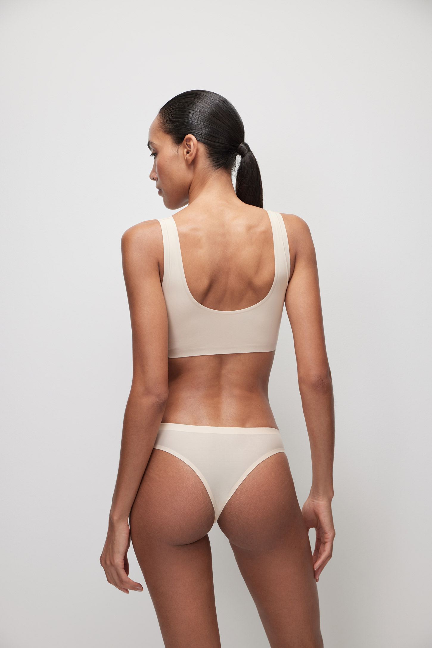 Трусы-танга с низкой посадкой изготовлены из сверхтонкого и эластичного капронового трикотажа с высококачественной клеевой обработкой срезов. Модель дополнена мягкой гигиенической ластовицей из 100% хлопка