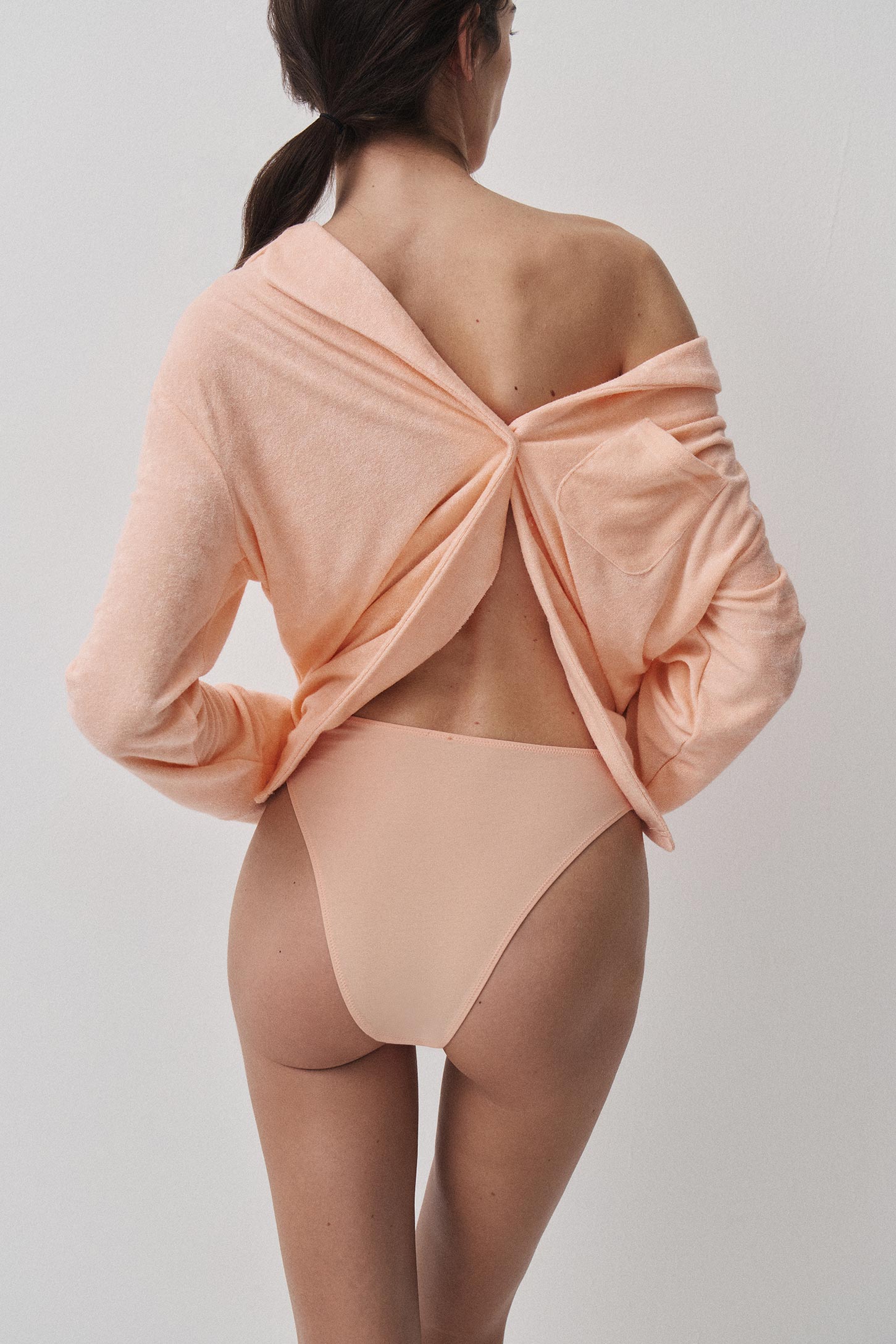 Трусы-танга с высокой посадкой изготовлены из мягкого, тонкого хлопка. Модель дополнена мягкой гигиенической ластовицей из 100% хлопка.