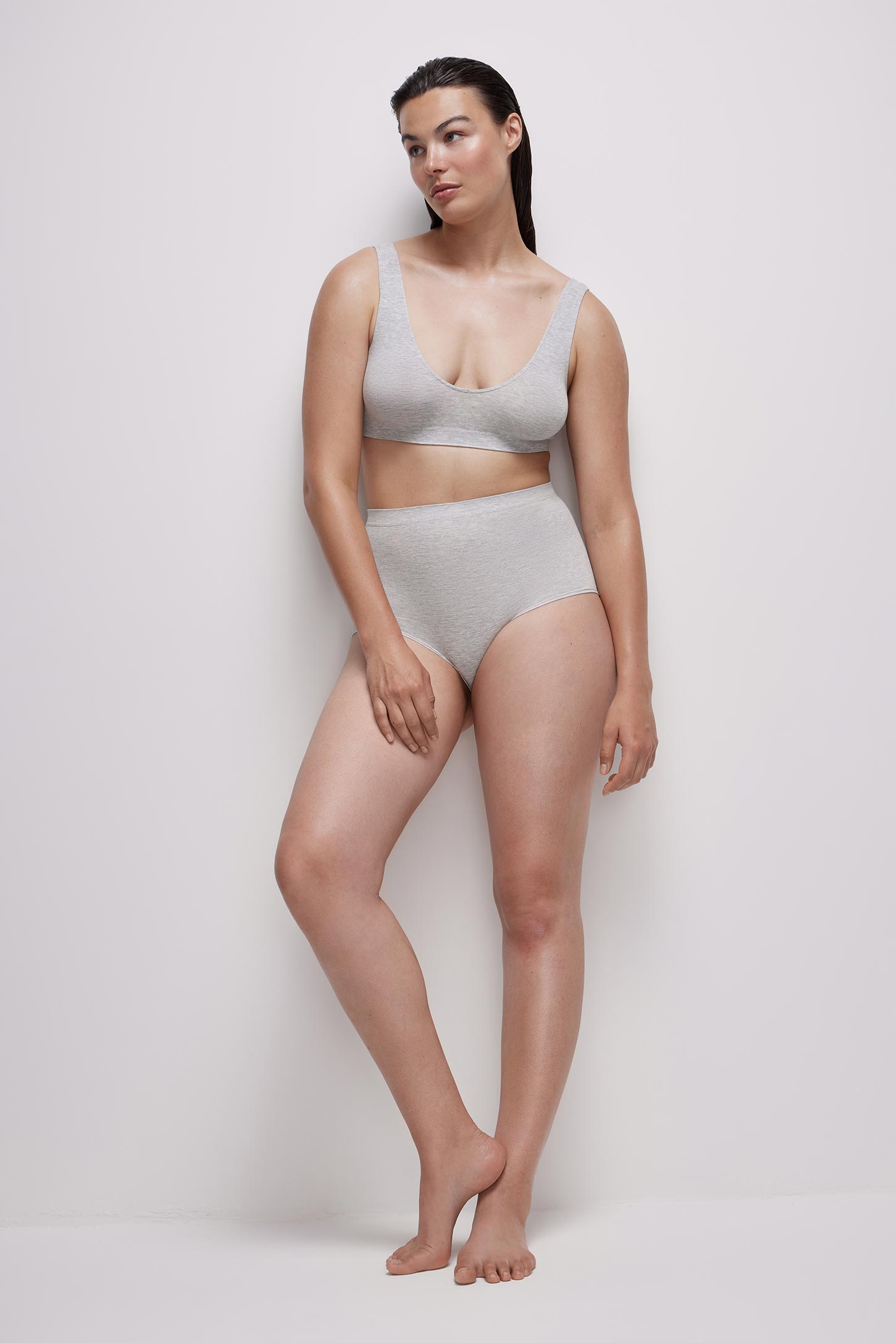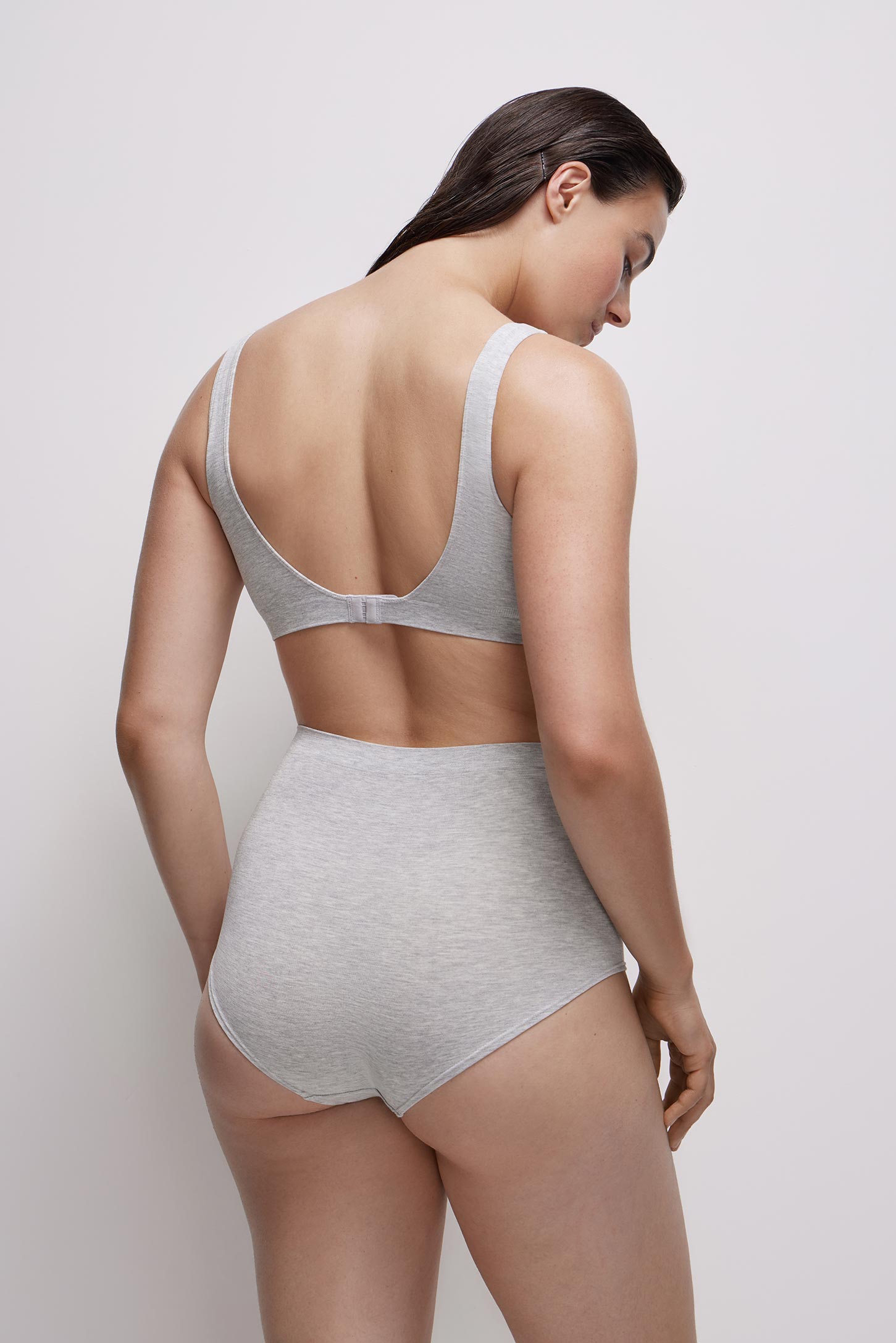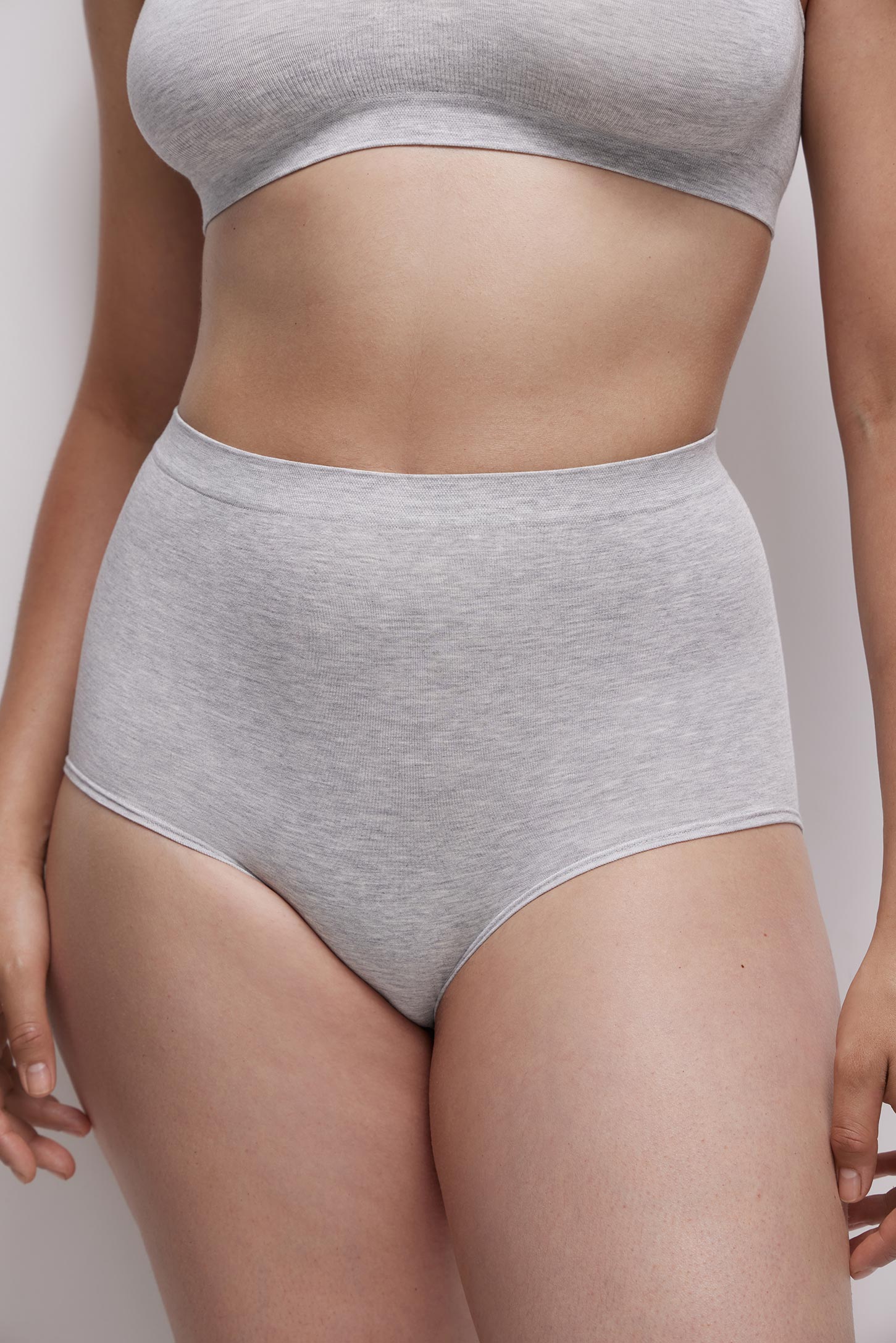 Трусы-кюлот с высокой посадкой светло-серый меланж