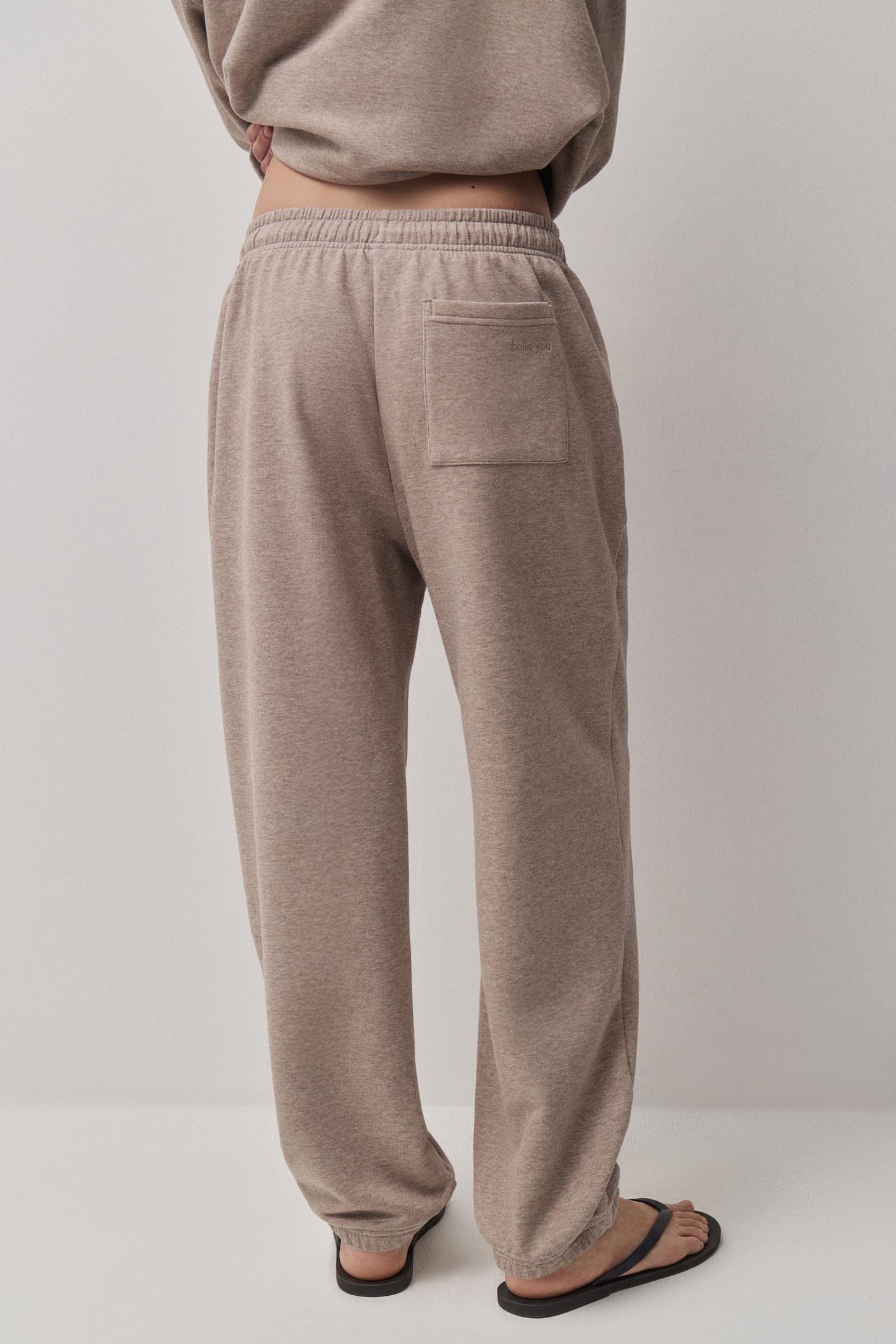 Брюки -джоггеры из мягкого футера на резинке по талии и с небольшой сборкой на резинку по низу . Посадка изделия на талии также регулируется шнурком внутри пояса. Спереди расположены боковые карманы, сзади один накладной карман с вышивкой-лого. Рекомендуется дополнить брюки толстовкой W4200044 и W4200043, выполненными в этой же ткани.