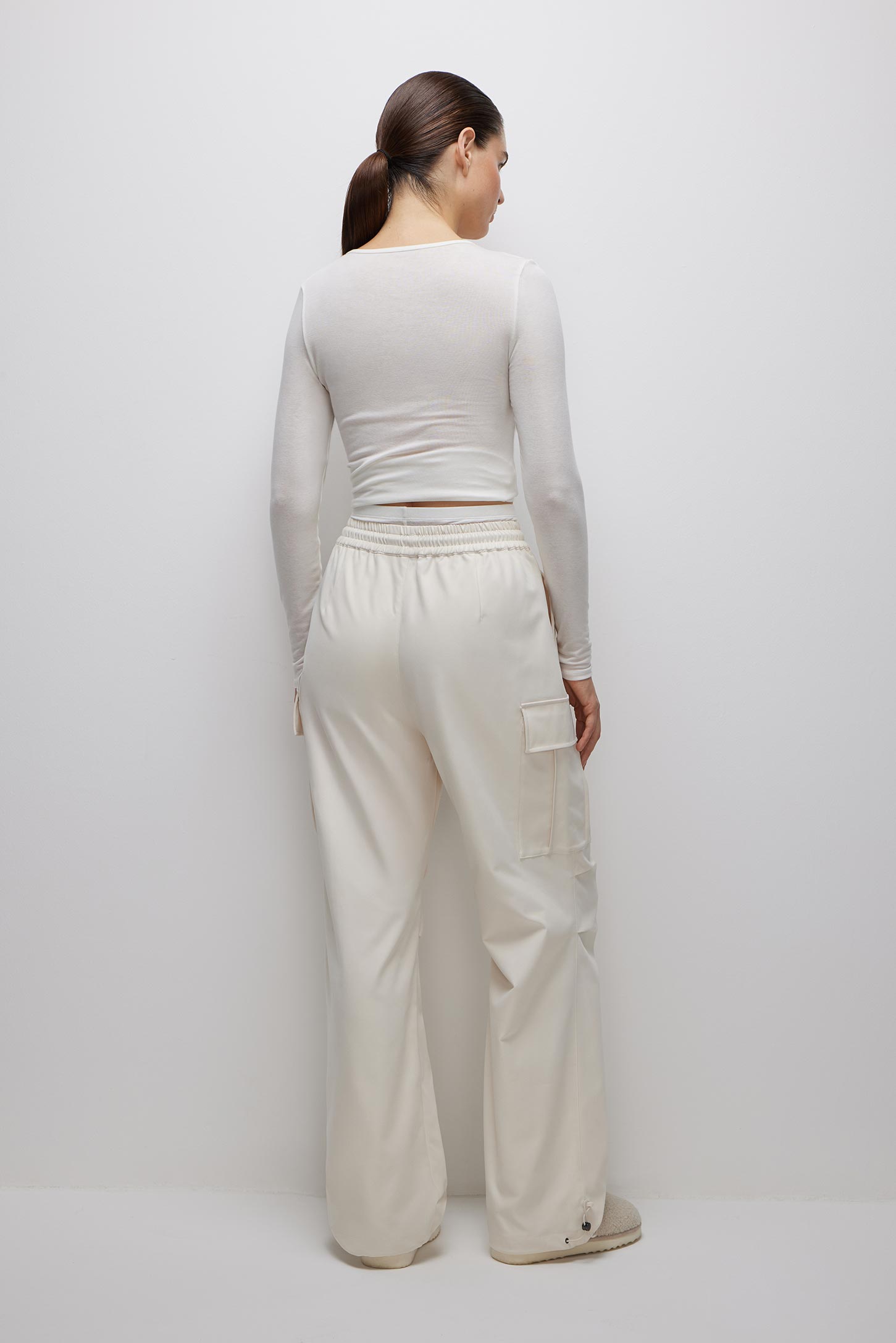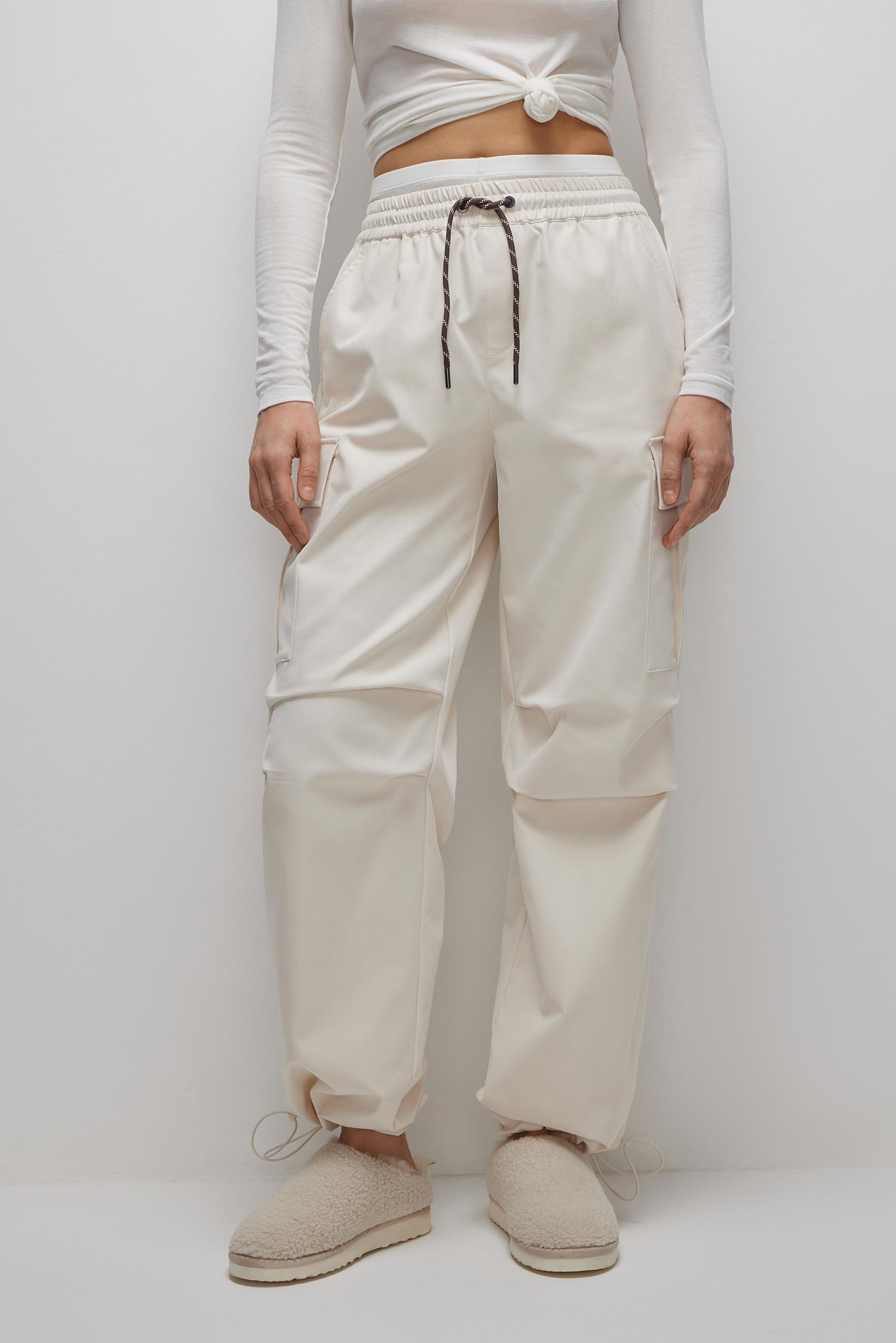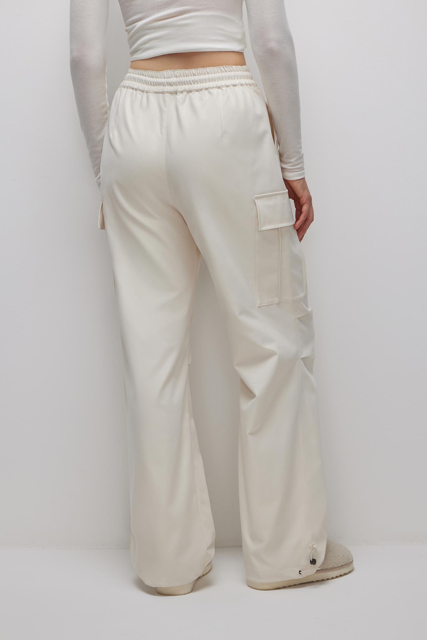 Плотные брюки-карго на резинке молочные