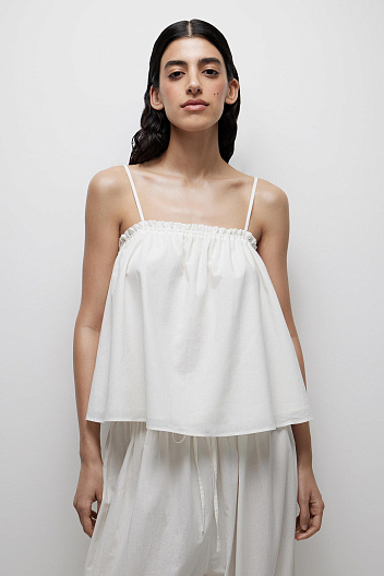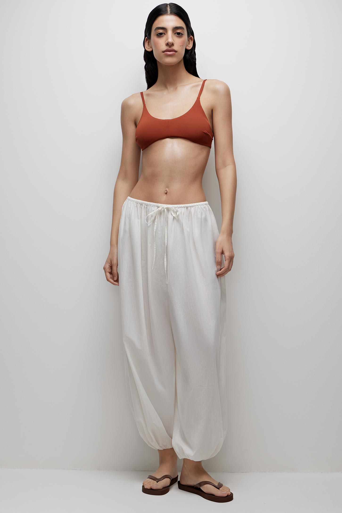 Широкие брюки-баллоны из легкой и мягкой хлопковой ткани станут акцентом в гардеробе. Прорезные боковые карманы и фиксирующие посадку резинки по низу и по поясу придают