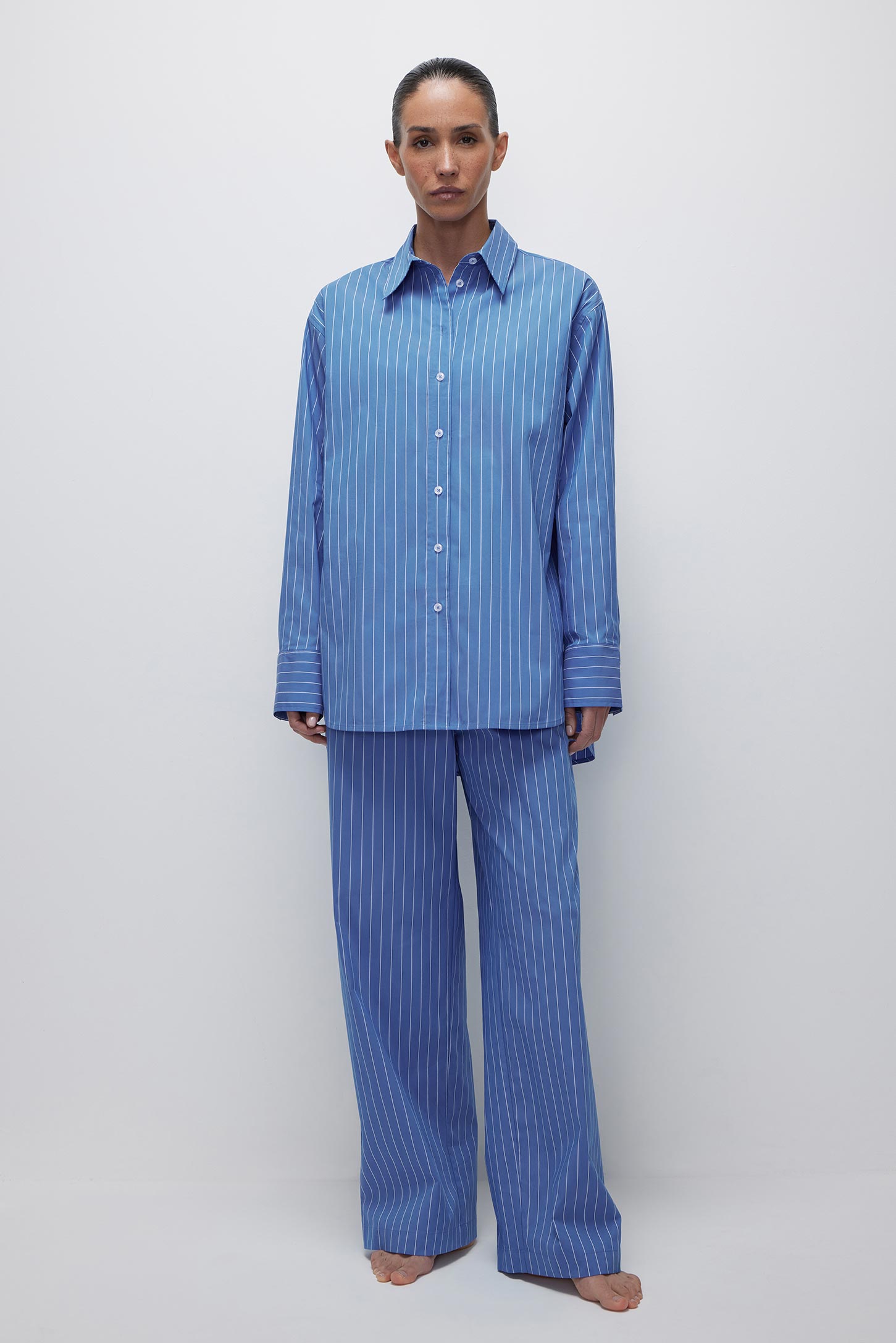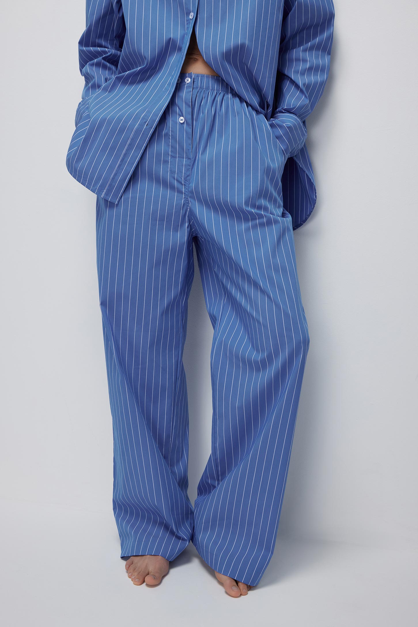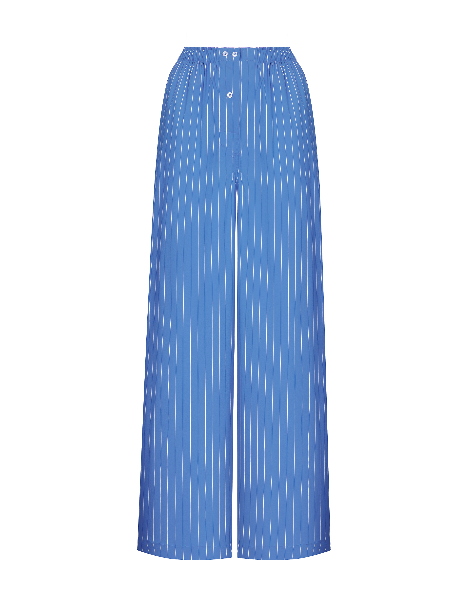 Прямые удлиненные брюки свободного кроя изготовлены из хлопкового поплина. Мягкий пояс на резинке обеспечивает удобную посадку изделия. Модель дополнена практичными карманами в боковых швах. Оригинальная деталь – декоративный гульфик с пуговицами. Благодаря добавлению синтетических волокон в состав ткани изделие практически не мнется. Сочетайте брюки с объемными рубашками из поплина. Такие комплекты идеально подойдут для создания расслабленных домашних и повседневных городских образов.