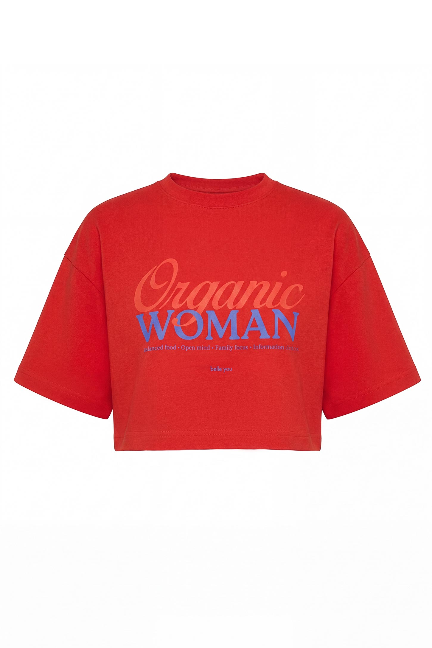 Укороченная футболка со спущенной линией плеча из хлопка с акцентным принтом спереди. Горловина обработана рибом. Рекомендуется дополнить футболку шортами W4160019 и брюками W4170037, выполненными в этой же ткани.
