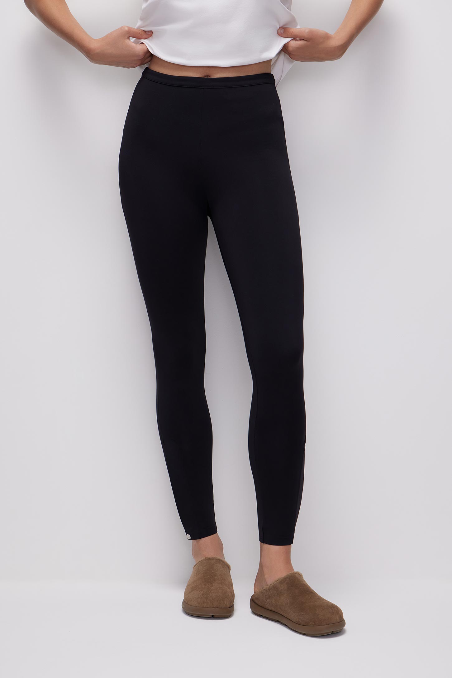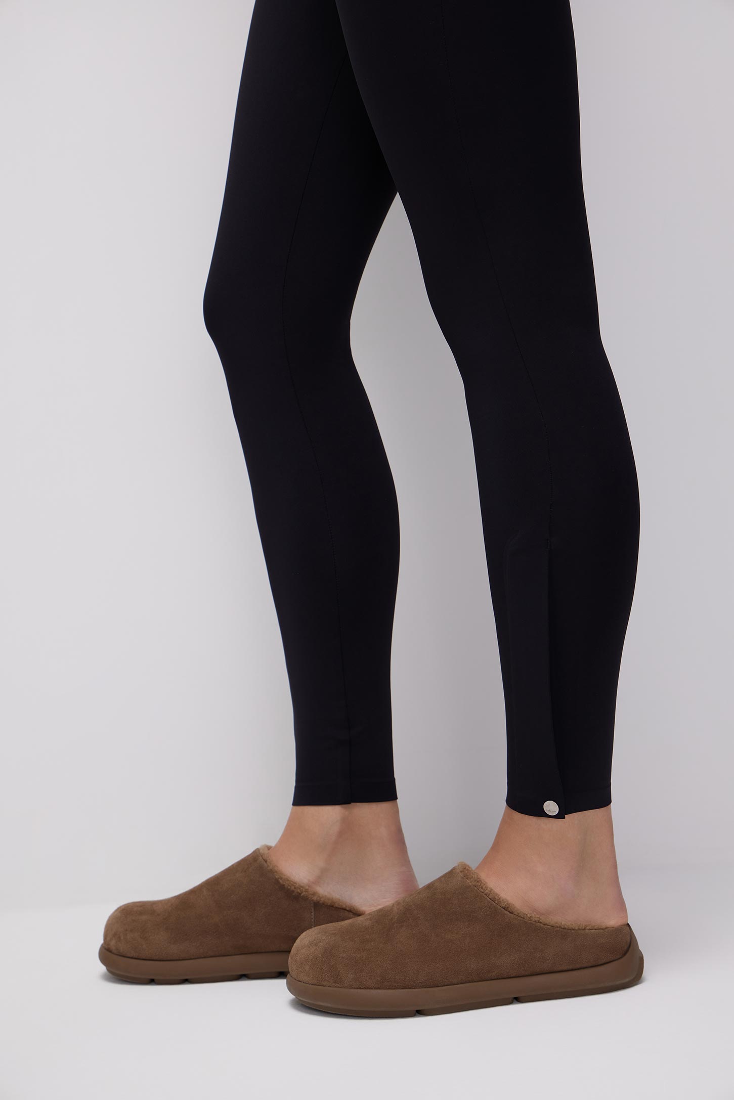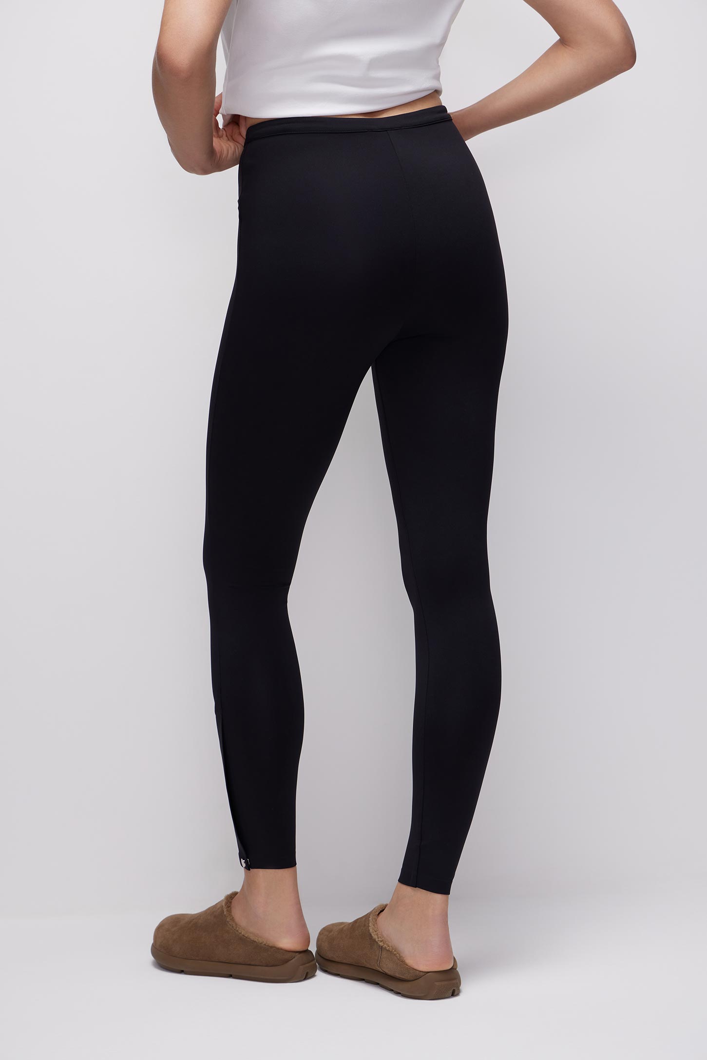 Модель выполнена из эластичного бифлекса, отлично подчеркивает фигуру. Плотная ткань не прозрачна, обеспечивает поддержку и позволяет носить в качестве брюк. Благодаря молниям, расположенным в нижней части, леггинсы легко надевать. Контрастного цвета шнур в поясе и кнопки с лого добавляют модели интересных акцентов.