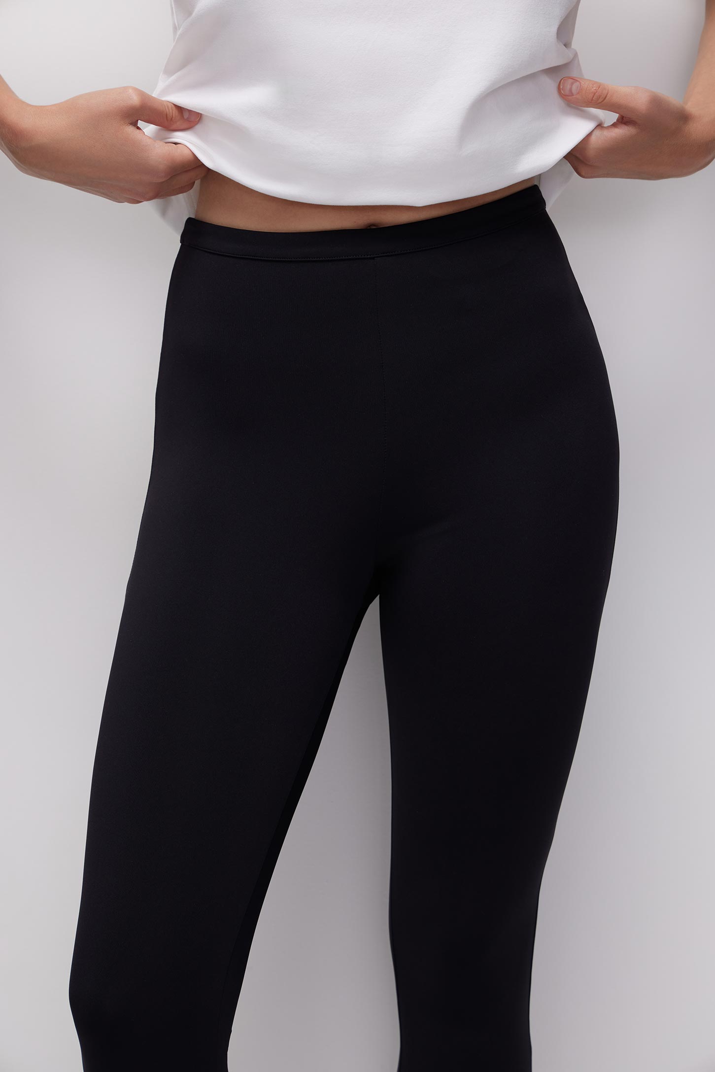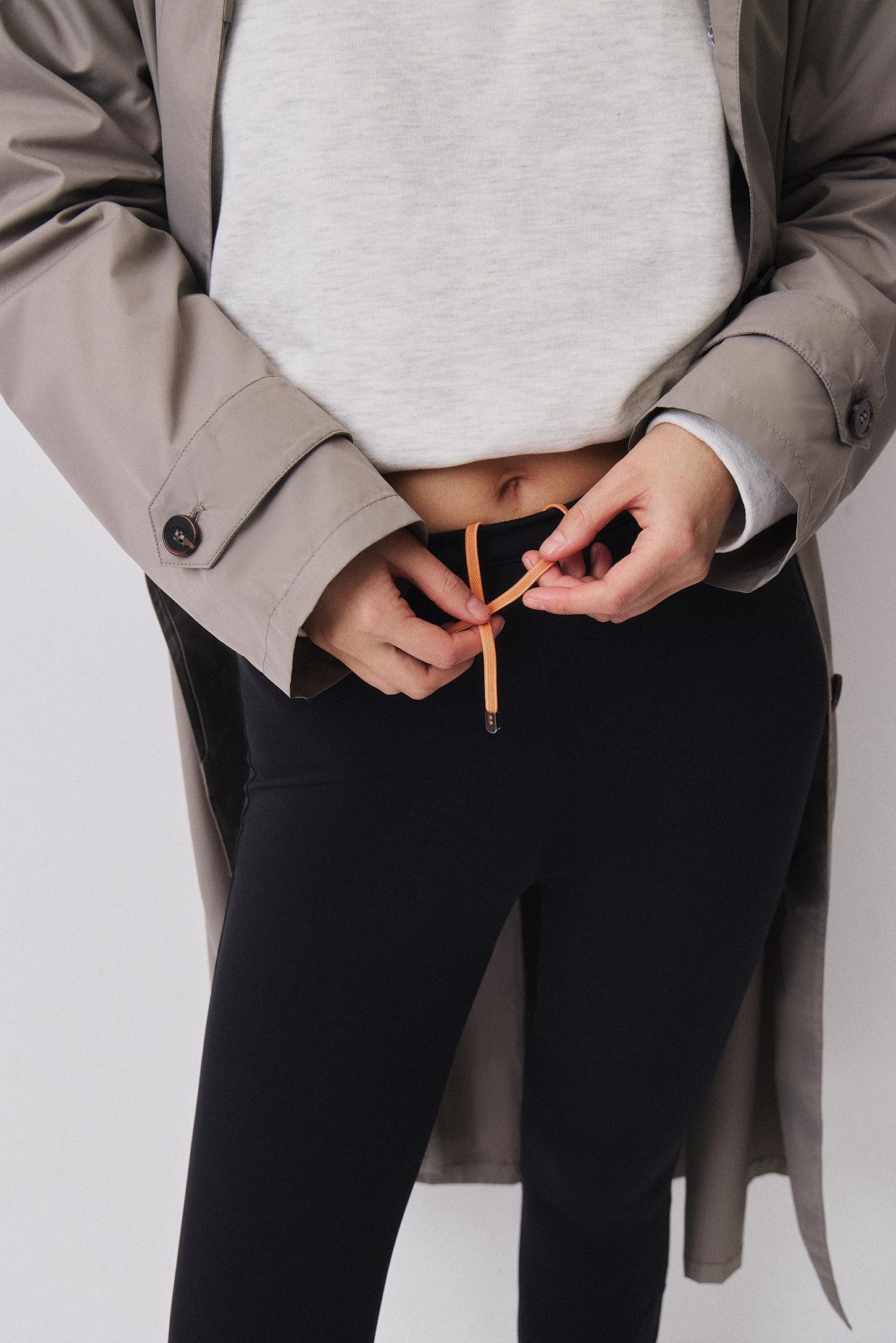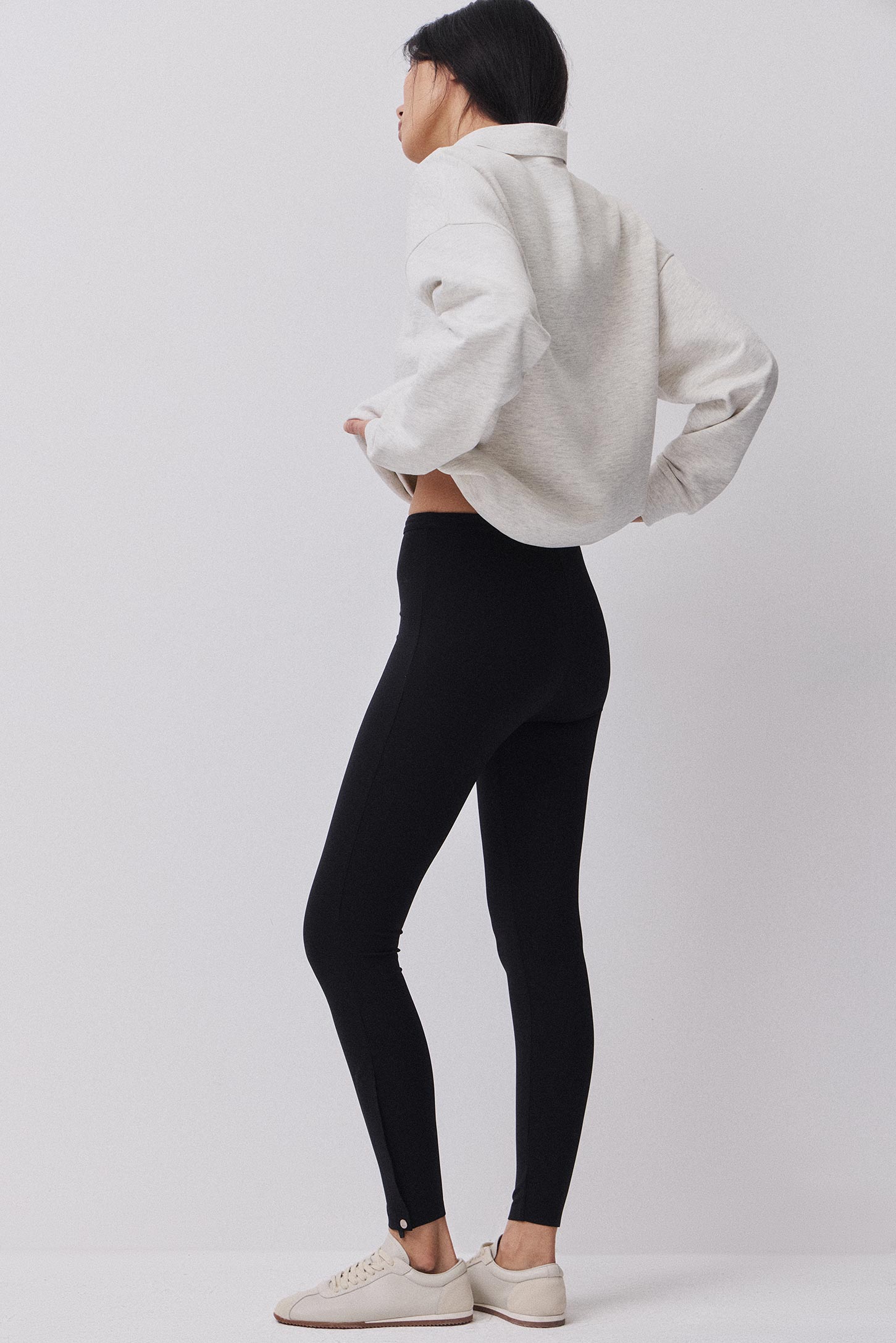 Модель выполнена из эластичного бифлекса, отлично подчеркивает фигуру. Плотная ткань не прозрачна, обеспечивает поддержку и позволяет носить в качестве брюк. Благодаря молниям, расположенным в нижней части, леггинсы легко надевать. Контрастного цвета шнур в поясе и кнопки с лого добавляют модели интересных акцентов.