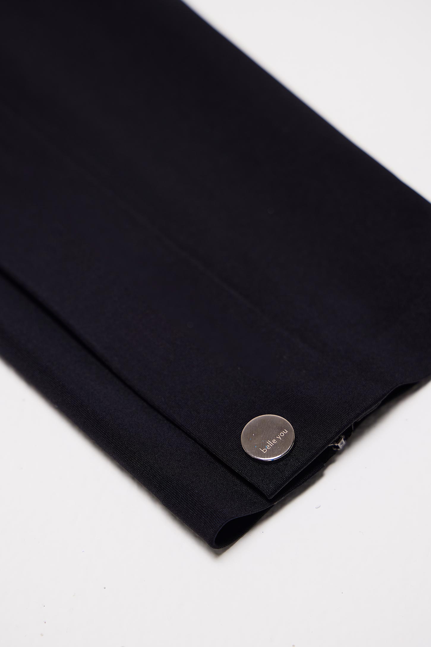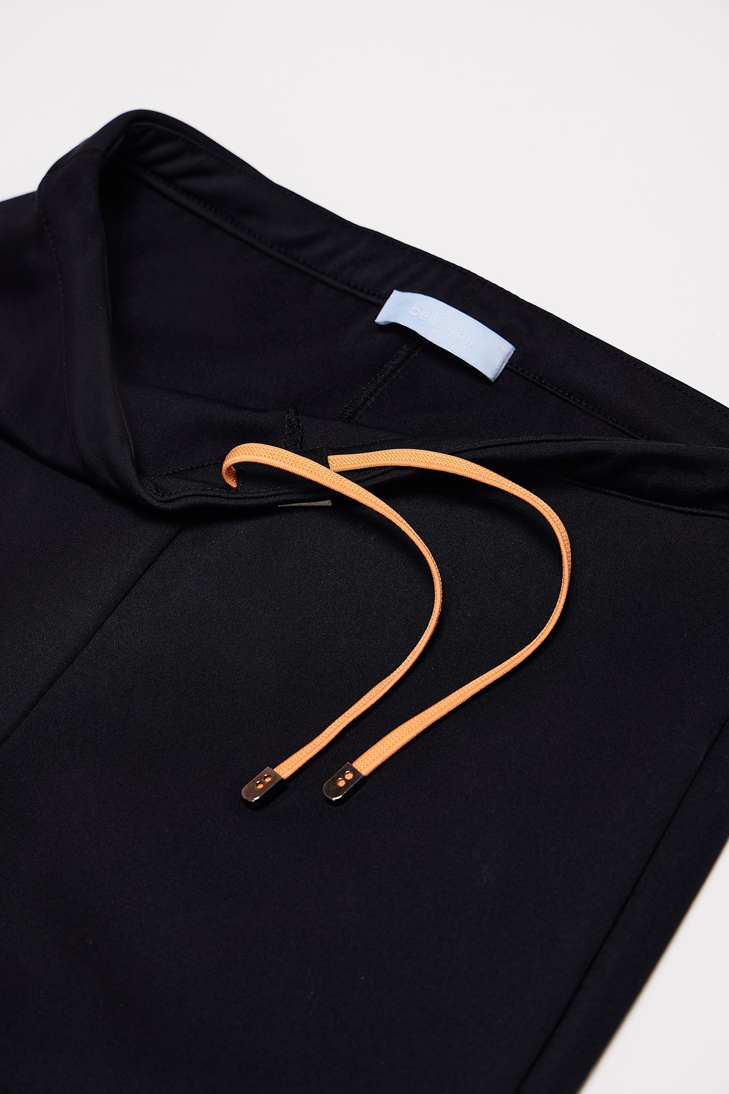 Облегающие брюки из мягкого бифлекса с высокой посадкой отлично подчеркивают фигуру. Эластичный шнур вдоль пояса служит дополнительным декором и позволяет лучше зафиксировать изделие по талии. Закрытые планками молнии по низу служат дополнительным декоративным элементом.