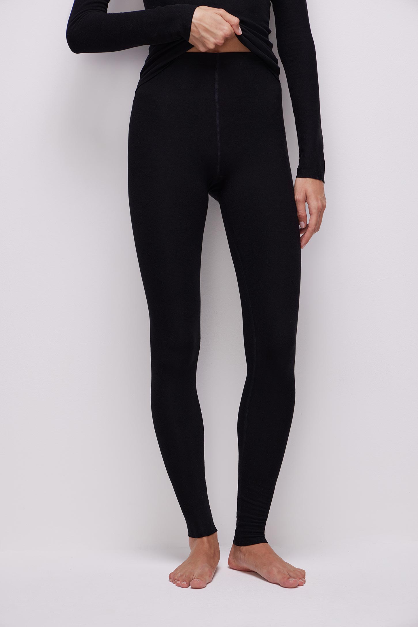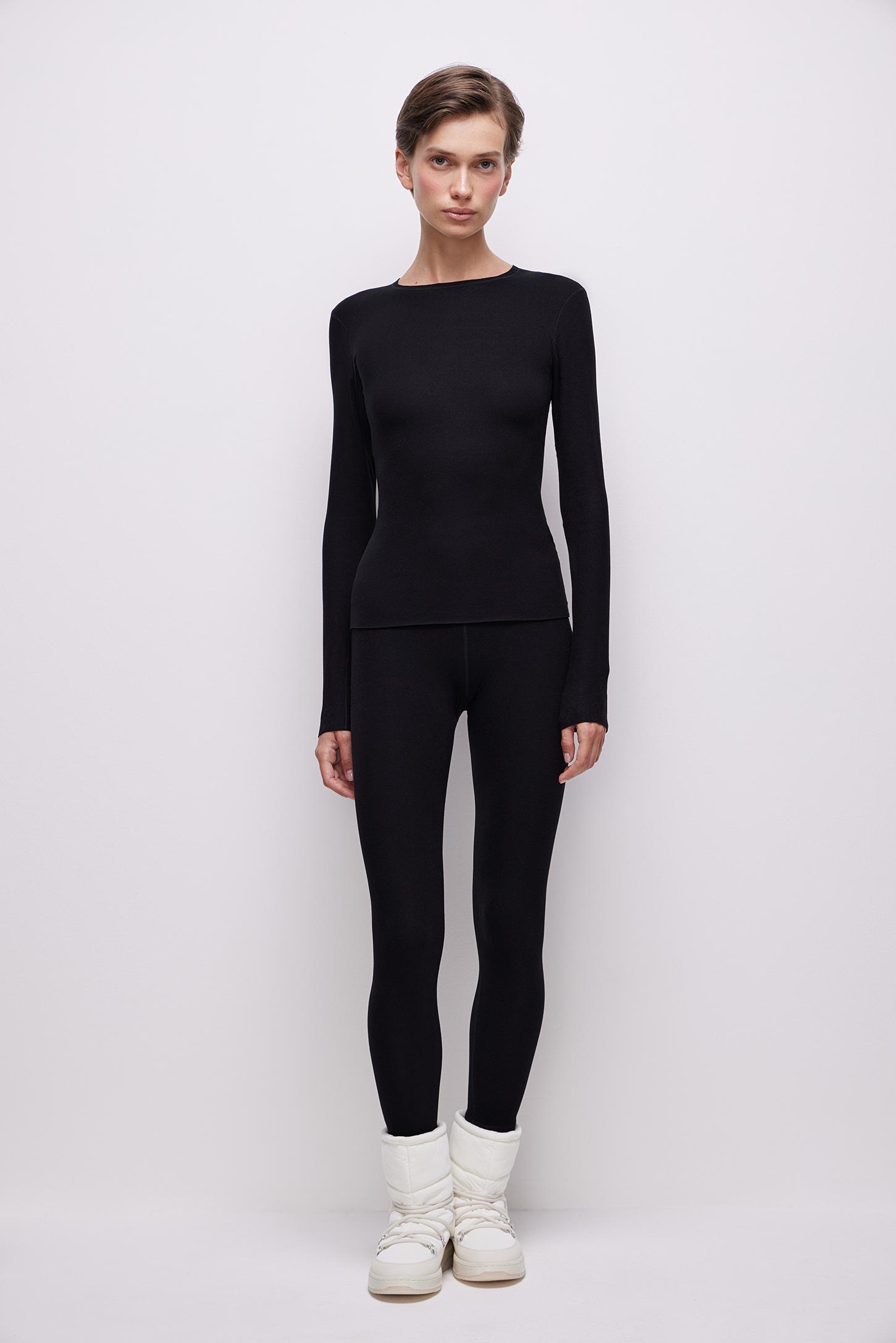 Трикотажные леггинсы с высокой посадкой подходят в качестве первого слоя в прохладную погоду. Мягкая ткань приятна на ощупь и не сковывает движения. Низ изделия обработан лазером. Рекомендуется дополнить леггинсы лонгсливом W4110019 из этого же материала. Изделие подлежит возврату.