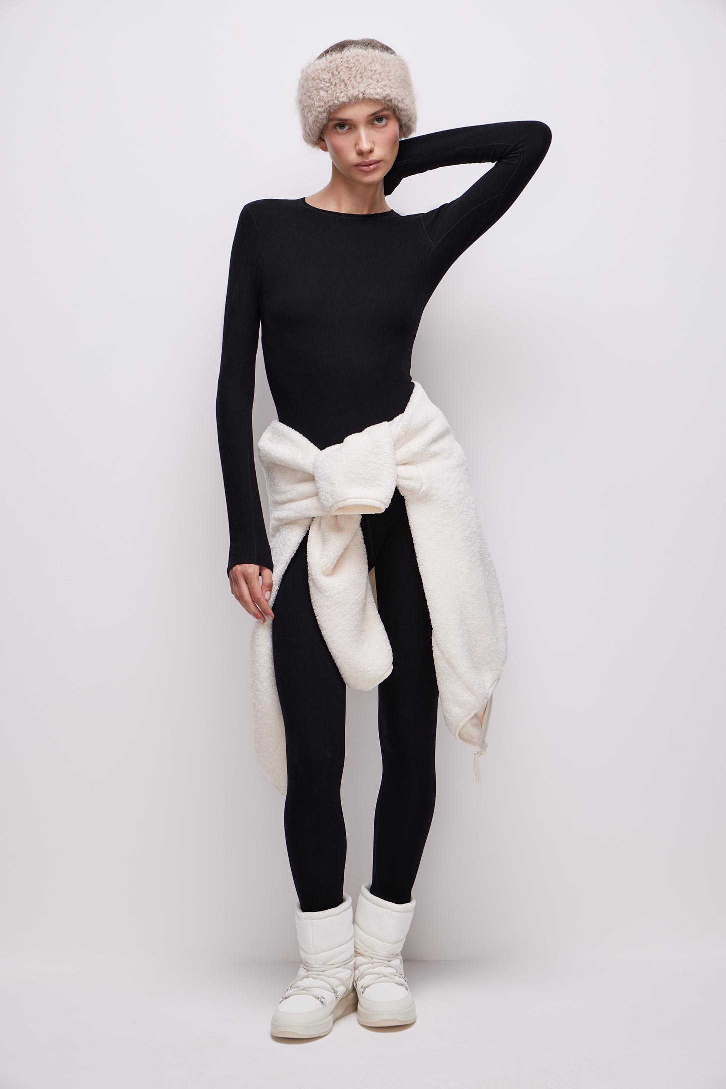 Трикотажные леггинсы с высокой посадкой подходят в качестве первого слоя в прохладную погоду. Мягкая ткань приятна на ощупь и не сковывает движения. Низ изделия обработан лазером. Рекомендуется дополнить леггинсы лонгсливом W4110019 из этого же материала. Изделие подлежит возврату.