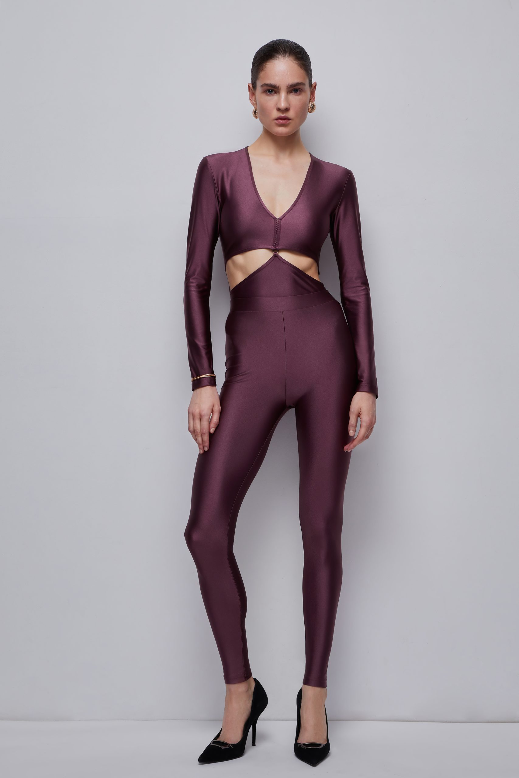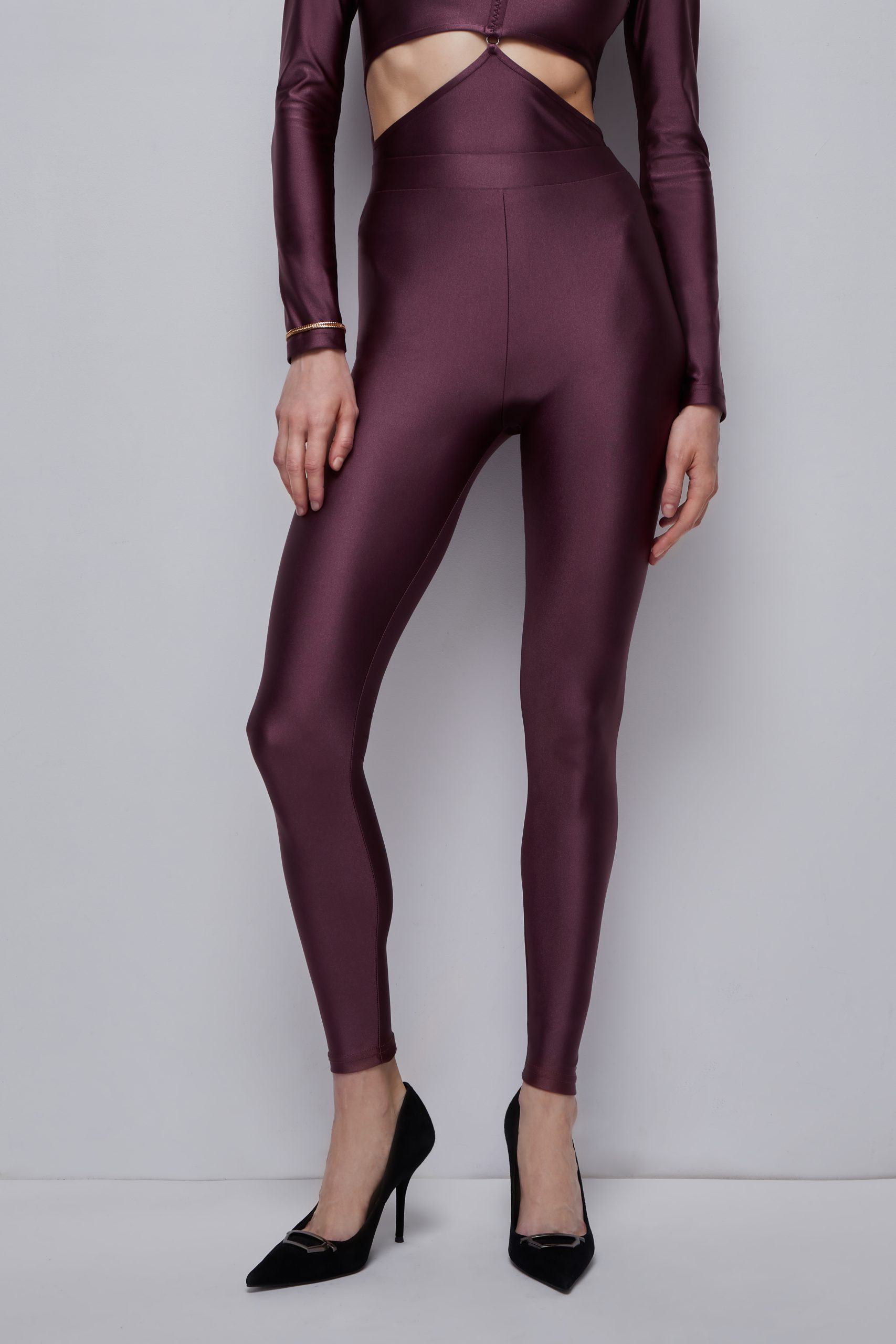 Легинсы с высокой посадкой из эластичного и плотного бифлекса с матовым блеском. Модель с поясом на резинке, скроенная по технологии без боковых швов из упругого материала, эффектно облегает фигуру и подчеркивает силуэт. Создавайте чувственные вечерние образы, сочетая легинсы с боди из бифлекса. Модель также подойдет для создания повседневных и спортивных образов.