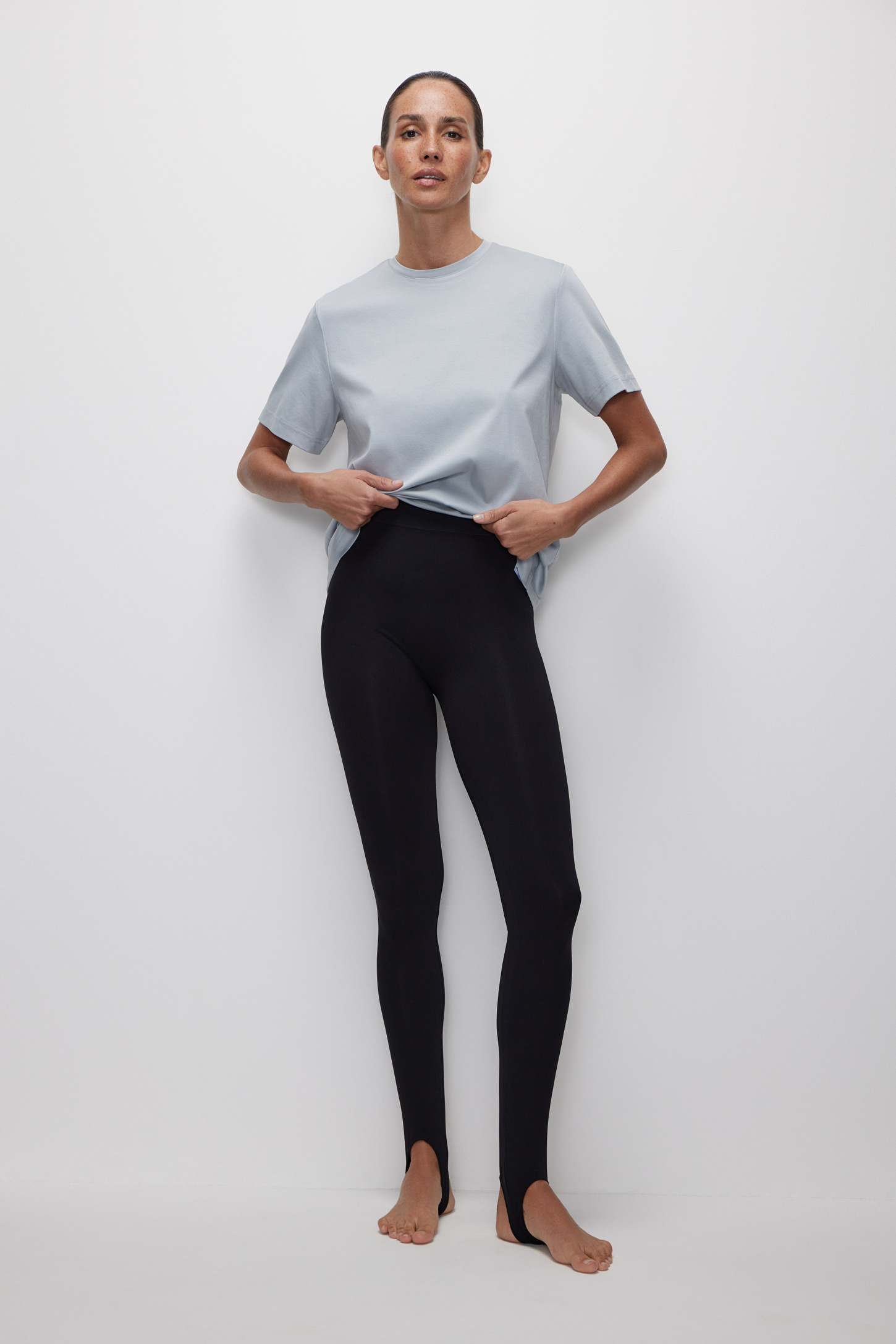 Базовые легинсы с высокой посадкой изготовлены по современной технологии без боковых швов из микрофибры средней плотности. Широкая цельновязаная резинка и высокая посадка моделируют фигуру и выгодно подчеркивают талию. Модель дополнена оригинальными деталями - штрипками. Комбинируйте легинсы с удлиненными пиджаками и разнообразными кардиганами. При выборе размера ориентируйтесь на рост.
