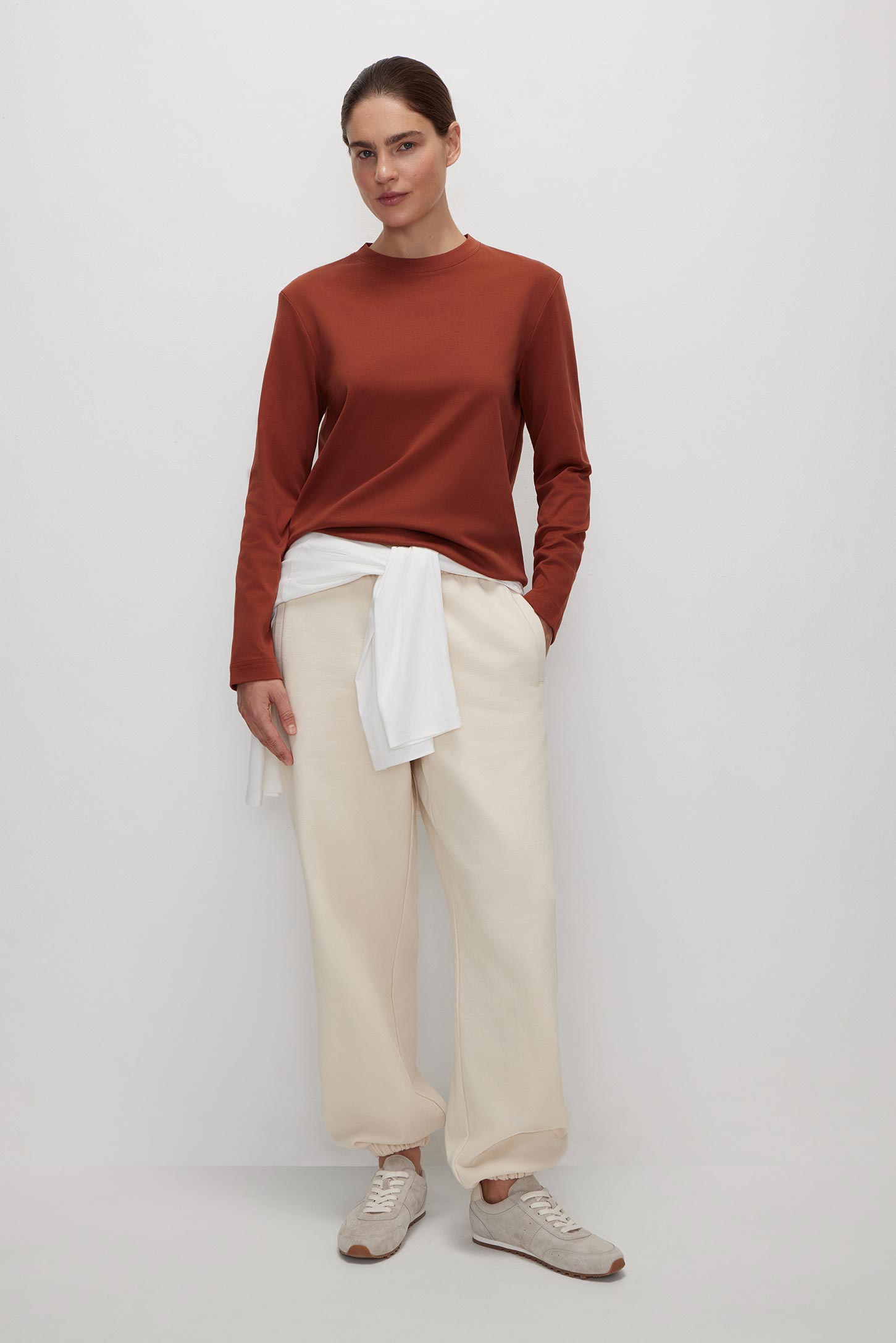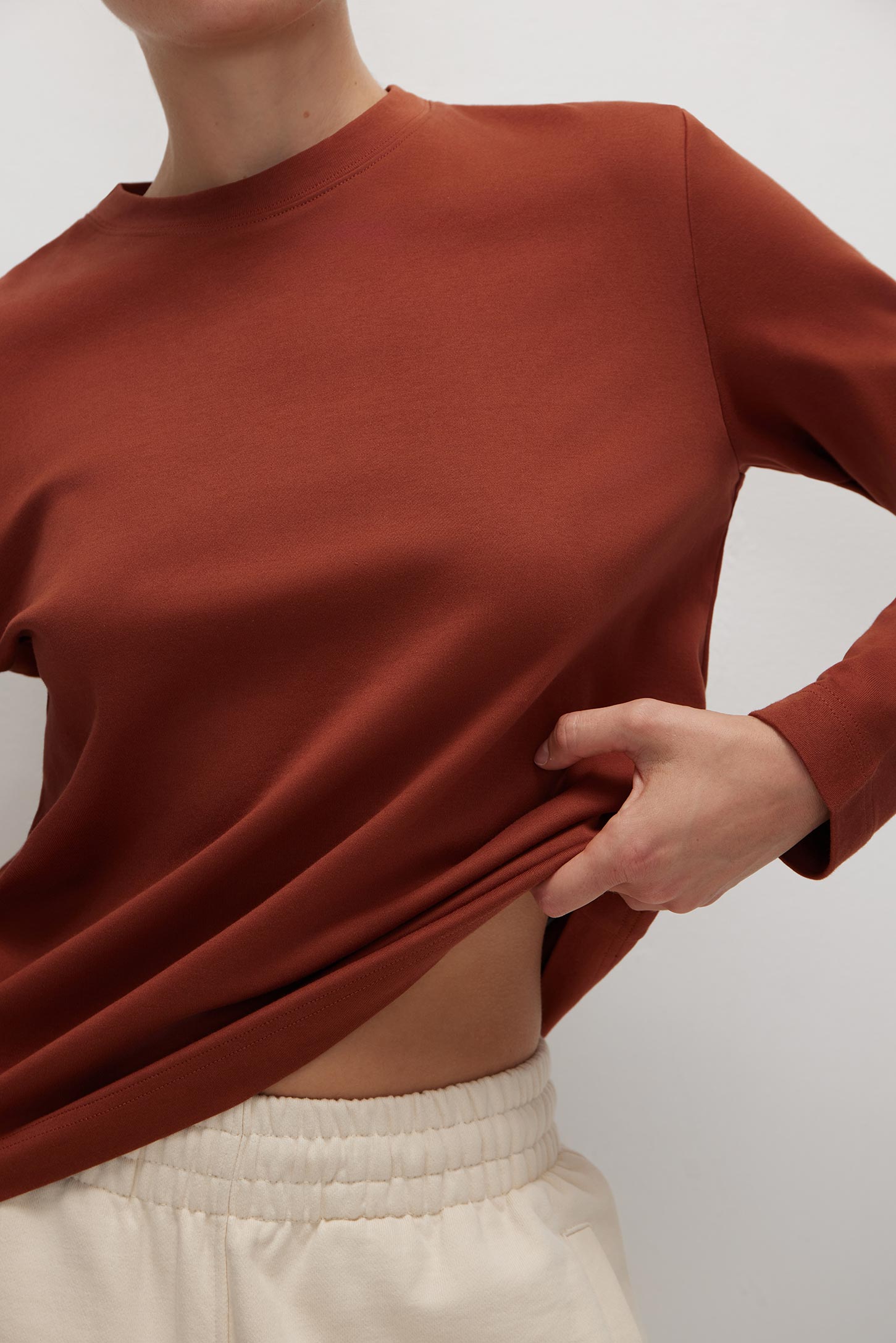Лонгслив свободного силуэта Хлопковая линия / Cotton Dream терракотовый