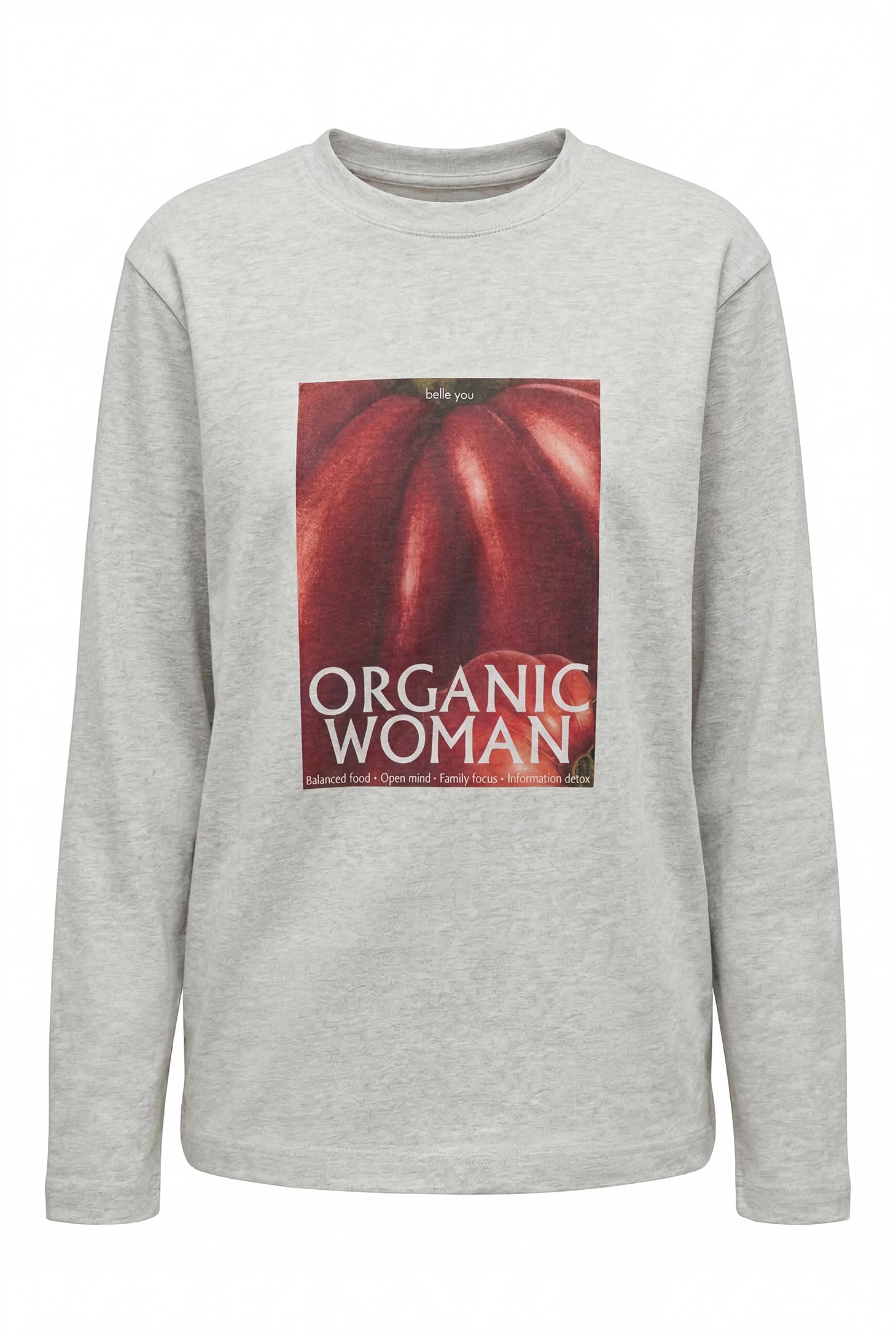 Лонгслив из хлопка Одежда с характером светло-серый меланж