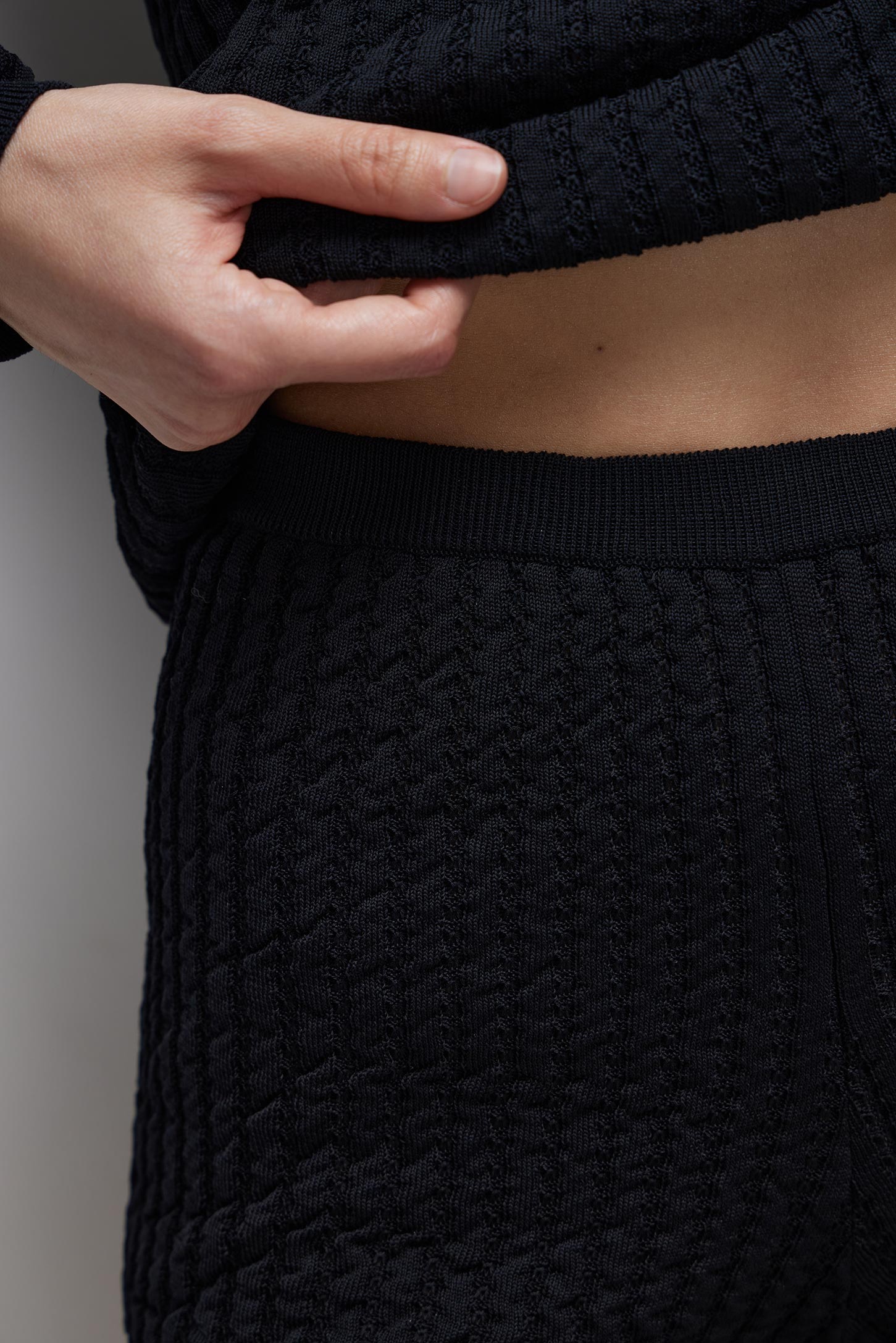 Мини-шорты из хлопка в ажурный рубчик черные
