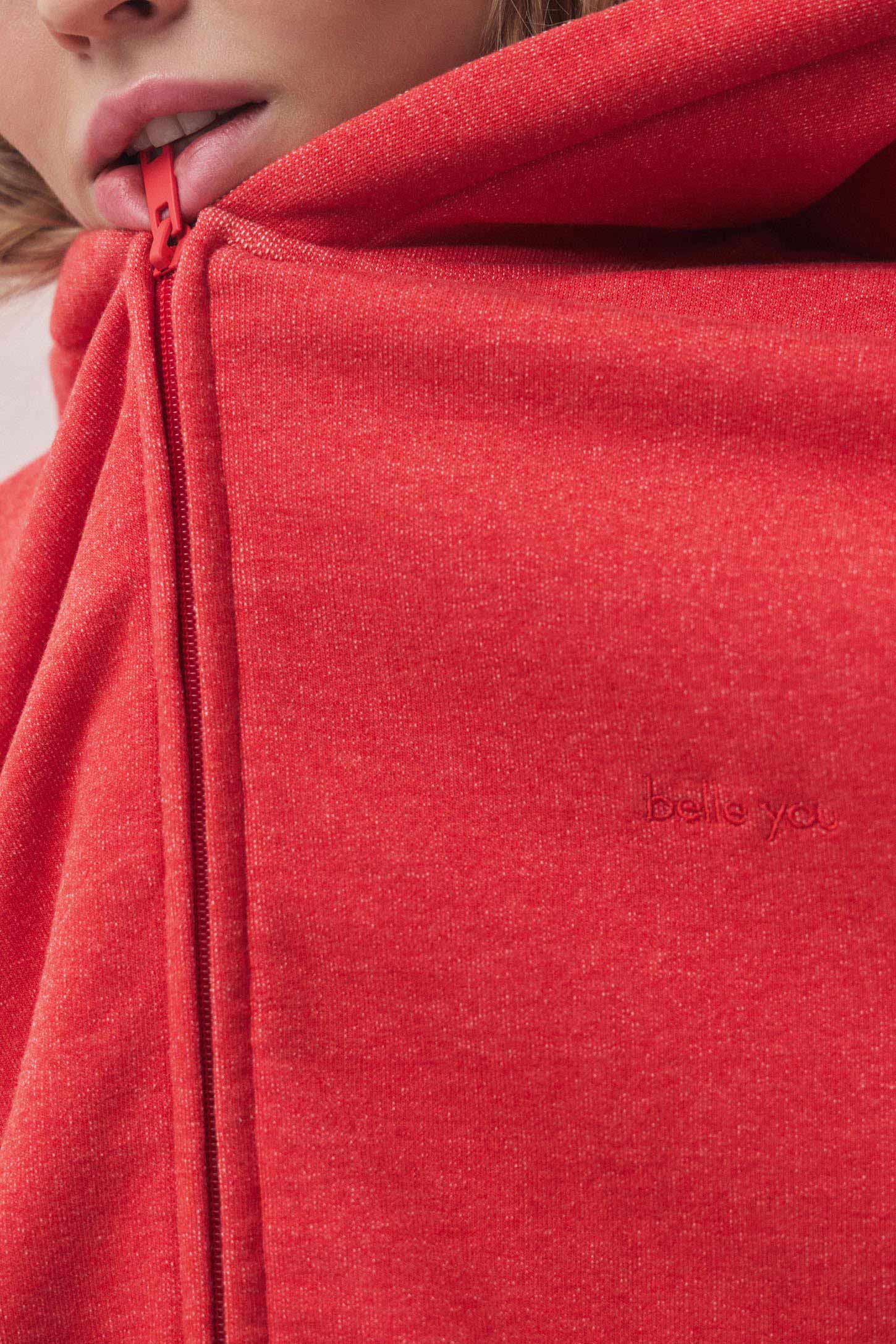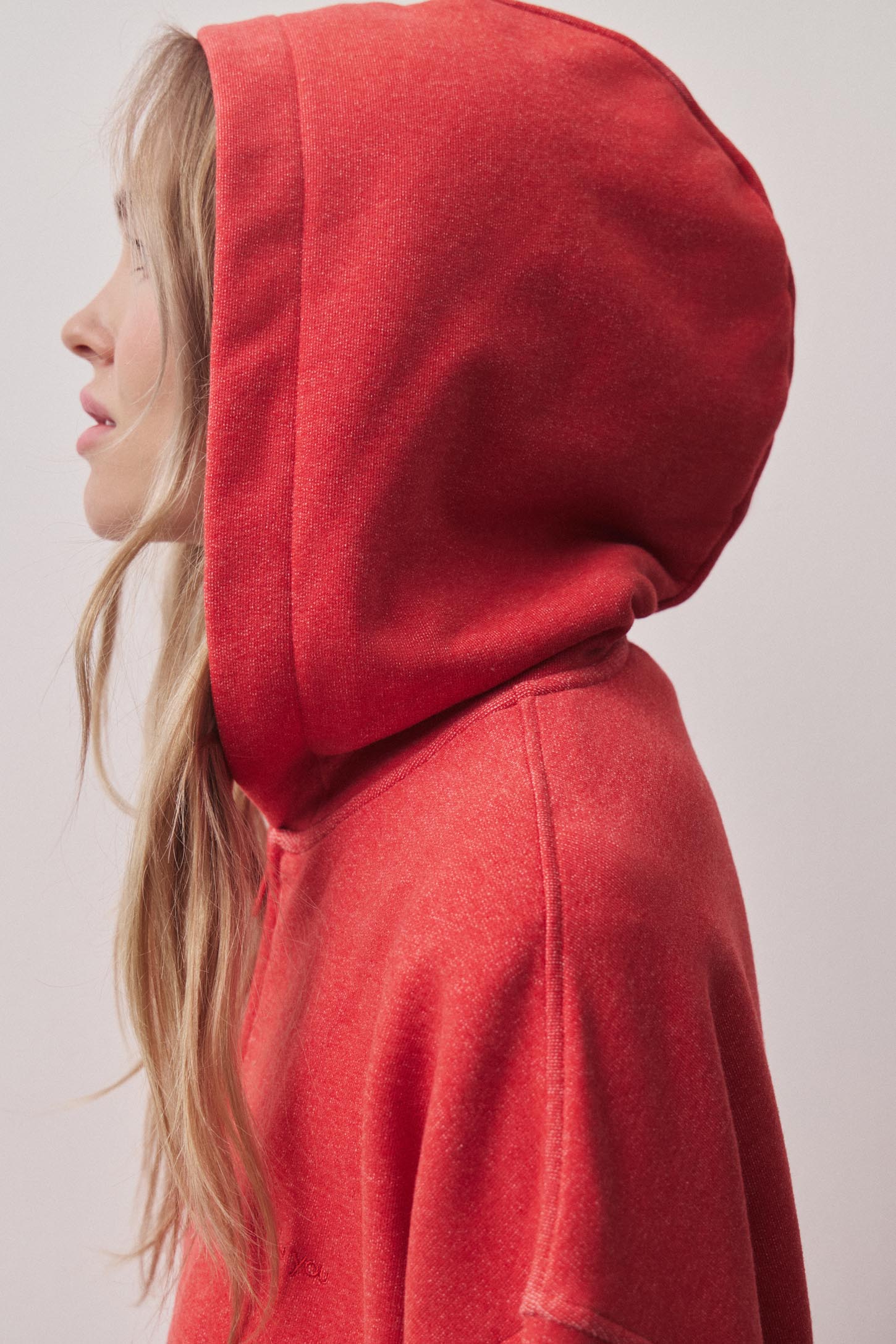 Толстовка силуэта оверсайз на молнии с капюшоном выполнена из мягкого уютного футера . Спереди расположены прорезные карманы с листочками. Манжеты и низ изделия окантованы рибом. Вышивка-лого добавляет маленький акцент лаконичной модели. Рекомендуется дополнить толстовку брюками W4170062, выполненными в этой же ткани.