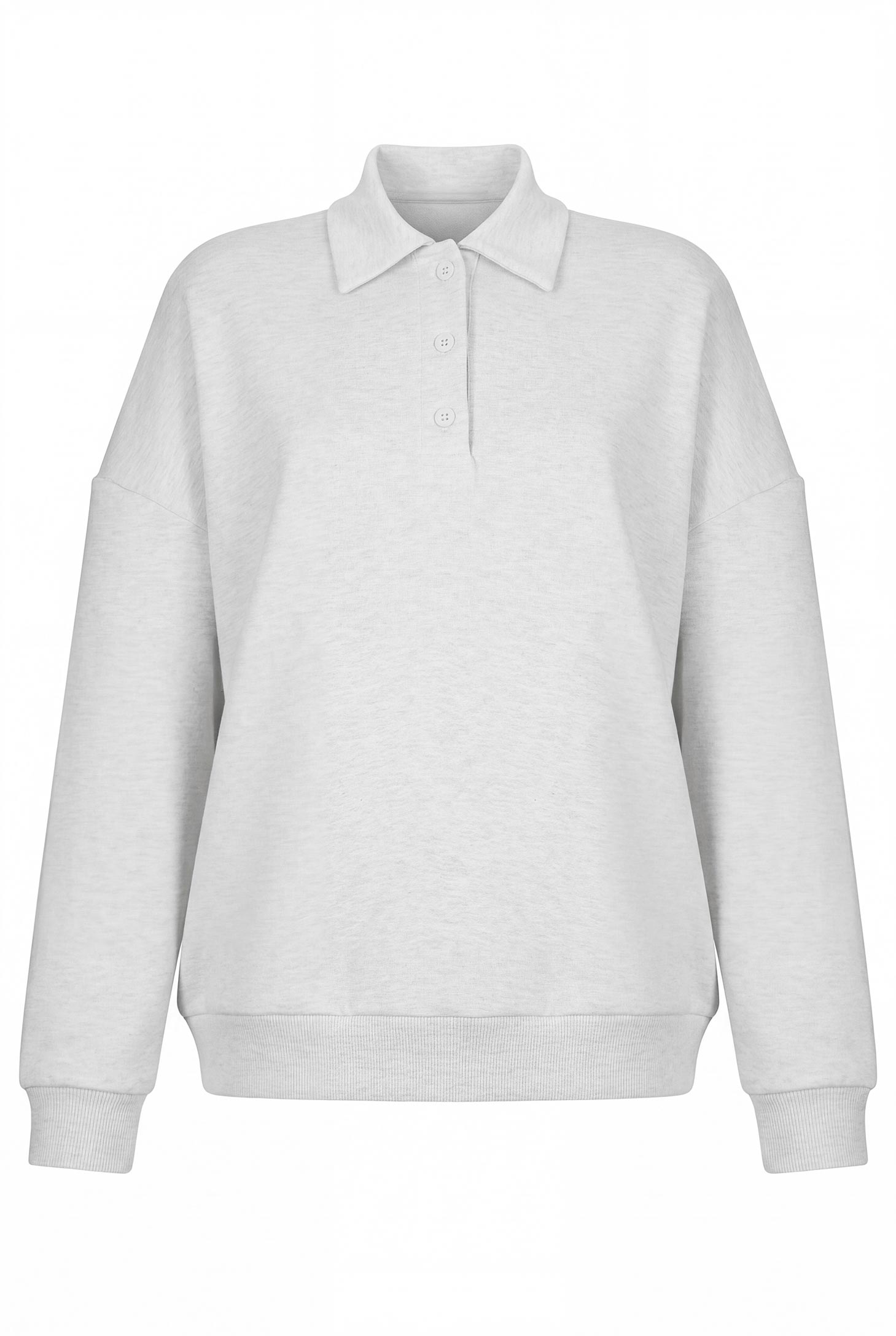 Толстовка с воротником-поло расслабленного силуэта. Воротник, низ изделия и рукава выполнены из риба. Планка с застежкой на 3 пуговицы. Изделие выполнено из гладкого футера. Рекомендуется дополнить толстовку брюками W4170066, выполненными из того же материала.
